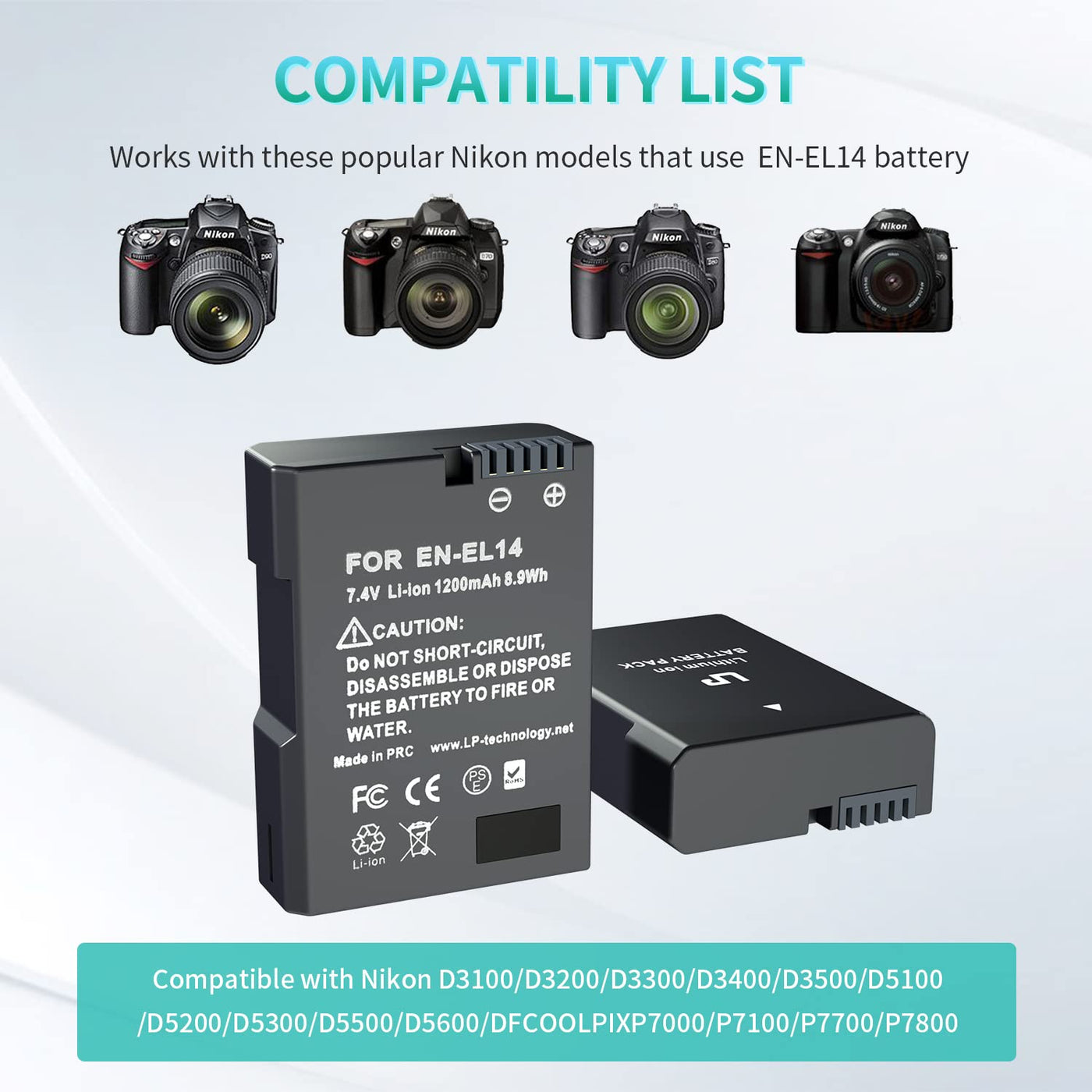 En El14 Battery Pack, Lp 2 Pack En El14A Replacement Battery, Compatible With D3500, D5600, D3300, D5100, D5500, D3100, D3200, D