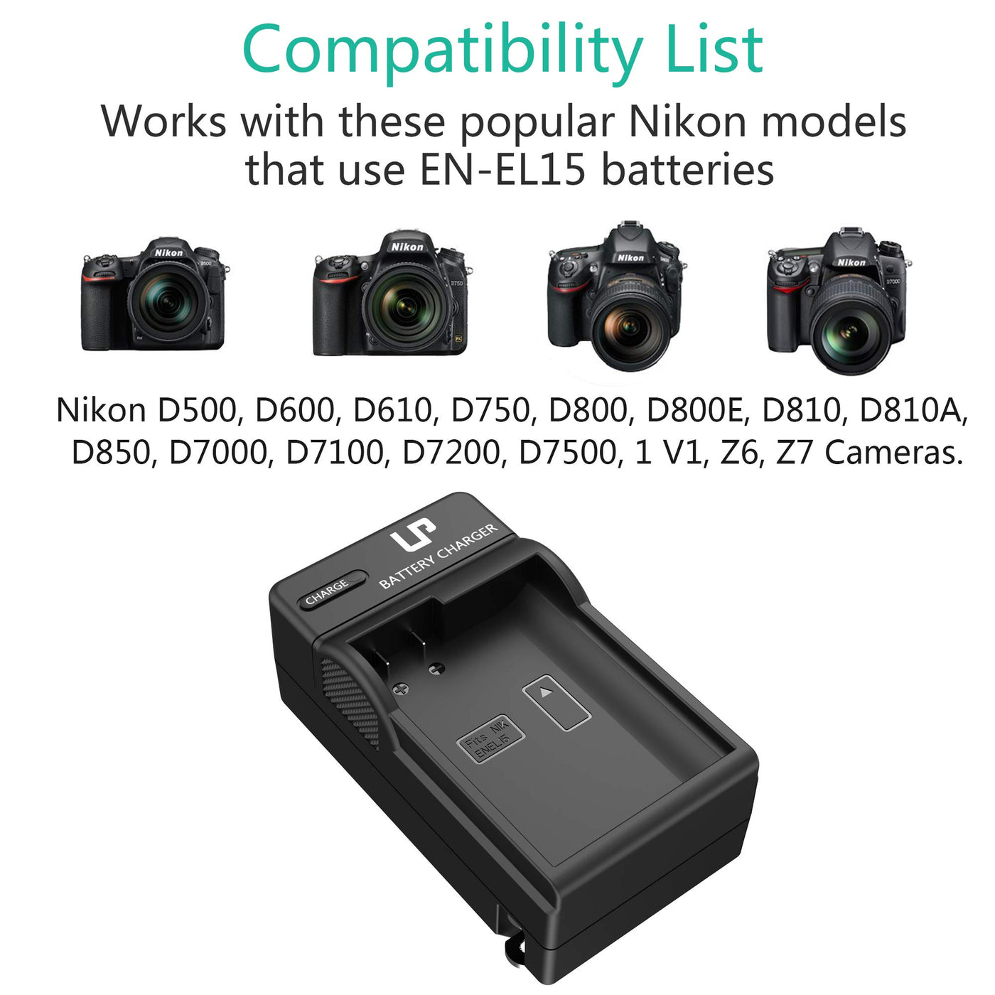 Lp En-El15 Battery Chargersafety And Reliable:Protection For Overcharge, Short Circuit, Electronic Shock With Ce, Rohs Certifications.100% Oem Compatible:Meets Or Exceeds The Oem Nikon En-El15, En-El15A Battery And Mh-25, Mh-25A Charger. Lp Battery And Charger Are Tested By Manufacturer To Match Oem Products.Smart Led Indicator: Shows The Status Of Battery. Green For Standby, Red For Charging.Portable:A Good Choice For Travel Or Other Indoor/Outdoor Activities. Compatible With: Nikon D500 Nikon D600 Nikon D610 Nikon D750 Nikon D800 Nikon D800E Nikon D810 Nikon D810A Nikon D850 Nikon D7000 Nikon D7100 Nikon D7200 Nikon D7500 Nikon 1 V1Nikon Z6Nikon Z7 Package Contents: 1 * Lp En-El15 Battery Charger