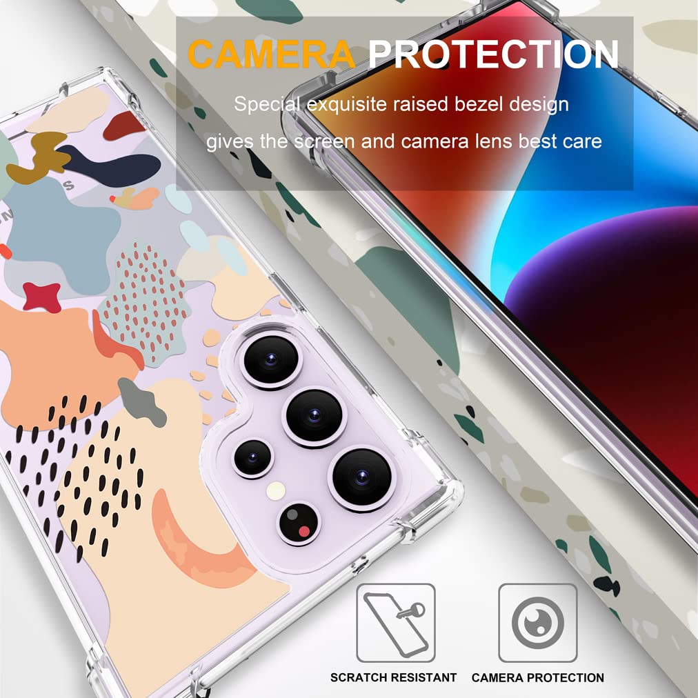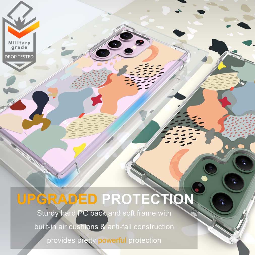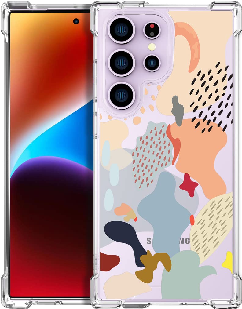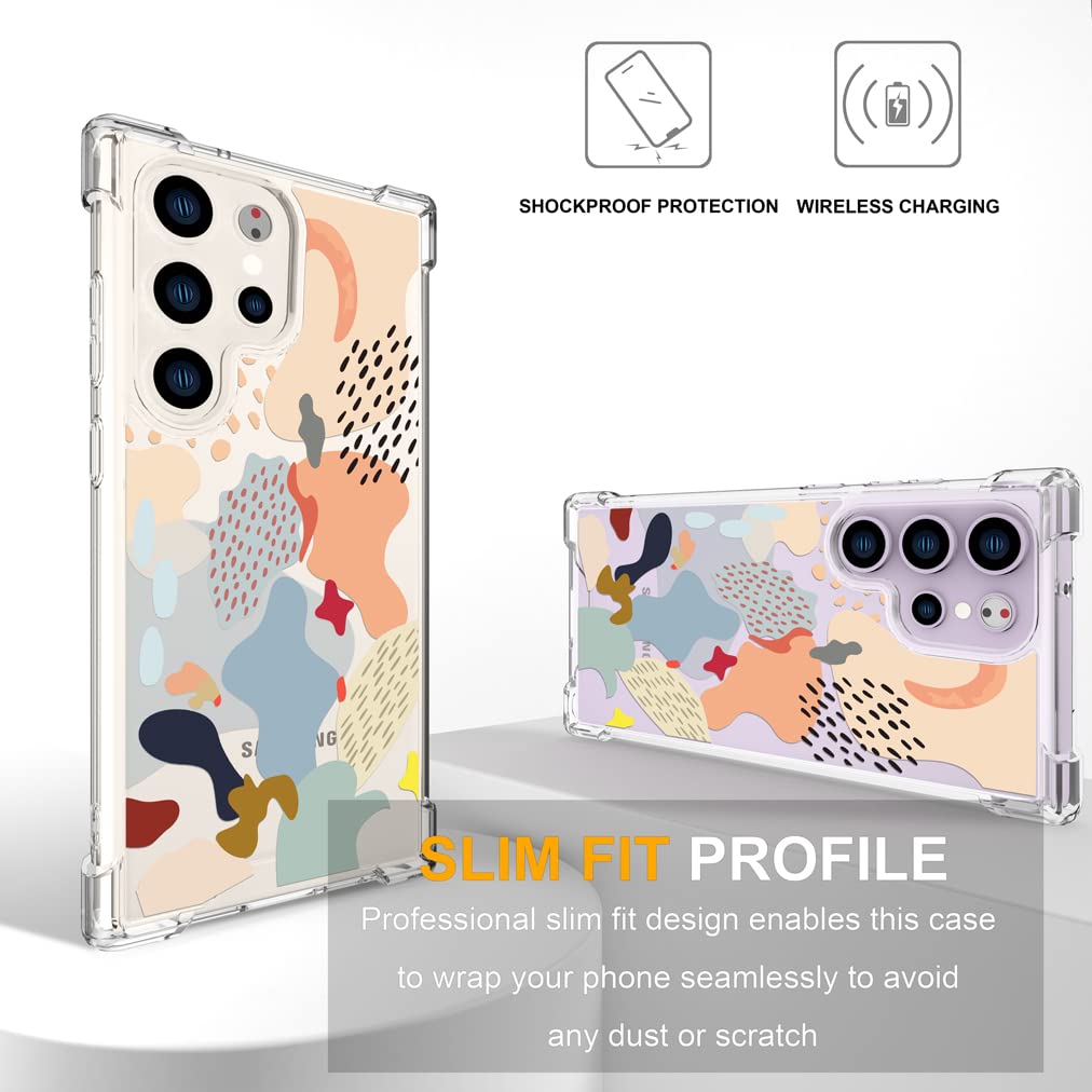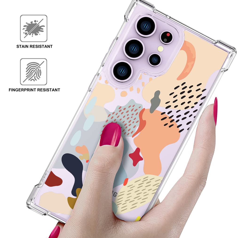 Endiy Compatible With Samsung Galaxy S23 Ultra Case Cute Abstract Art For Women Girls Girly Designer Clear,Transparent Abstract Art