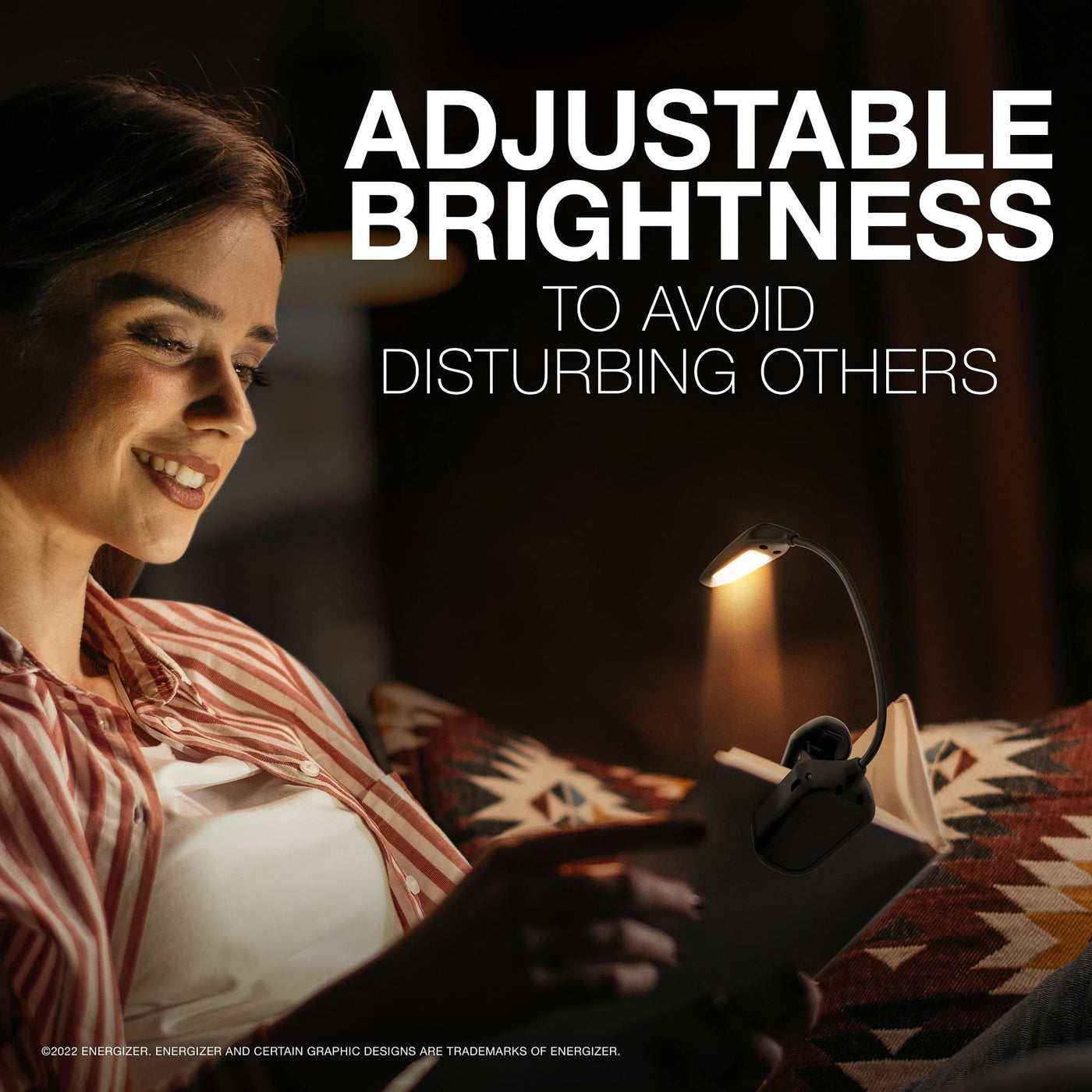 Read On The Go With The Energizer Rechargeable Led Book Light. This Rechargeable Reading Light Dims Down To The Perfect Light Level For Reading Or Traveling. To Avoid Disturbing Others, The Led Light Starts On Low. Warm, Cool And Combined Modes Let You Adjust The Color From Cool Task Lighting To Warm Reading Light. A Flexible Neck Directs The Lighting, And The Even Beam Is Wide Enough To Illuminate Even Large Pages. The Self-Standing Base Rests On Surfaces, While The Clip Ensures Secure Use. The Compact Led Flashlight Fits Easily In A Bag, Making This Energizer Led Flashlight Ideal For Travel.