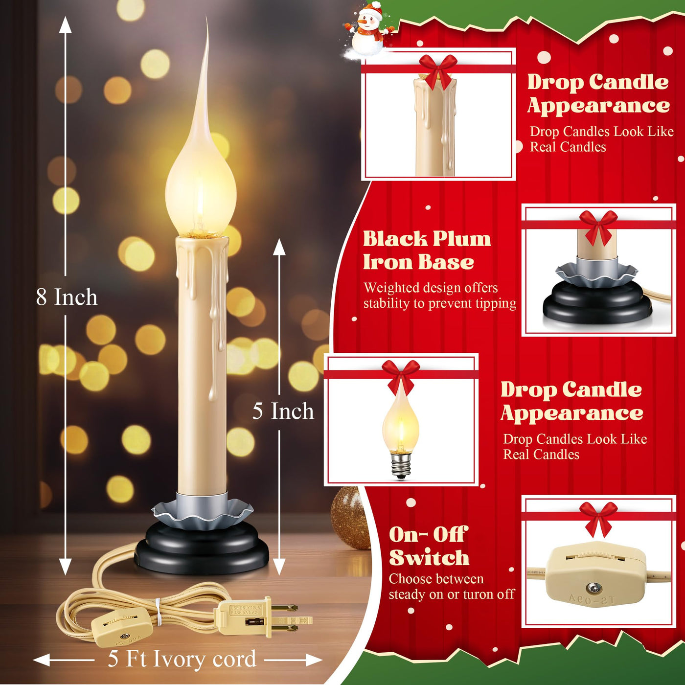 Illuminate Your Home With The Timeless Charm Of Our Electric Rustic Country Candle Lights. Features: Perfect For Year Round Decor These Electric Window Candles Aren'T Just For Christmas! Their Classic Designs Make Them Ideal For Year Round Decor. Use Them For Romantic Dinners, Cozy Evenings At Home, Or To Add A Touch Of Elegance To Weddings And Special Events. Their Versatility Ensures They Complement Any Occasion. Low Maintenance And Cost Effective Enjoy The Beauty Of Candlelight Without The Hassle Of Real Flames. Our Plug In Window Candles Offer A Safe, Smoke Free Alternative, Eliminating The Need For Messy Wax Cleanup. The Energy Saving Led Bulbs Last Longer Than Traditional Bulbs, Reducing Replacement Costs And Making These Lamps A Cost Effective Choice For Continuous Use. Specification: Rating: 120V Bulb Wattage: 0.6W Color: Warm White Light Bulb Type: Led Bulb, C7/E12 Base Material: Plastic, Silicone And Metal Wire Length: 5 Ft Candle Size: 5'' Tall (8'' Overall With The Bulb) Package Include: 4 X Electric Window Candle Lights Note: Winding Risk May Exist, Please Keep Our Product Away From Children.