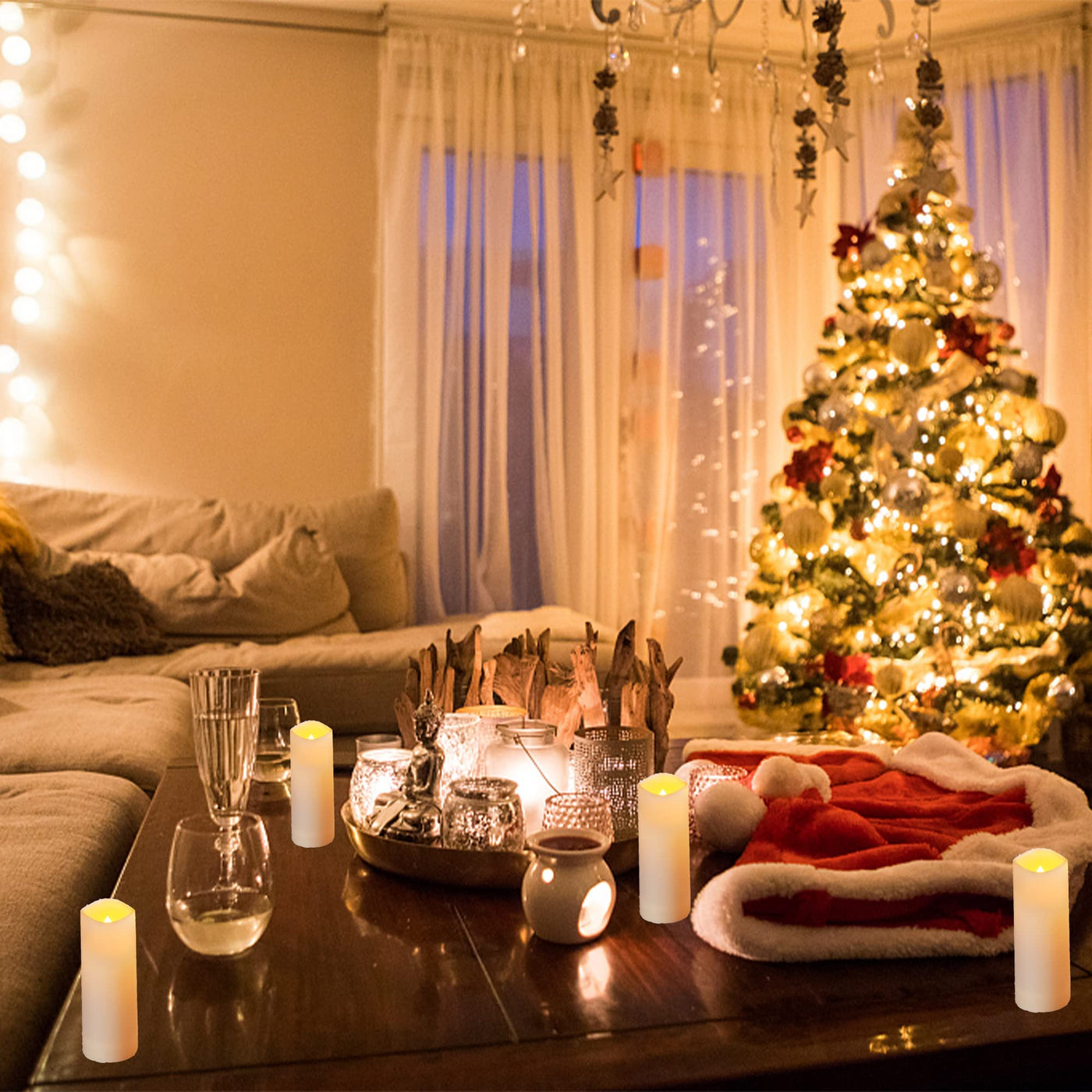 Enido Flameless Waterproof Led Candles, Battery Operated With 10 Key Remotes And Cycling 24 Hours Timer For Outdoor, Indoor, Wed