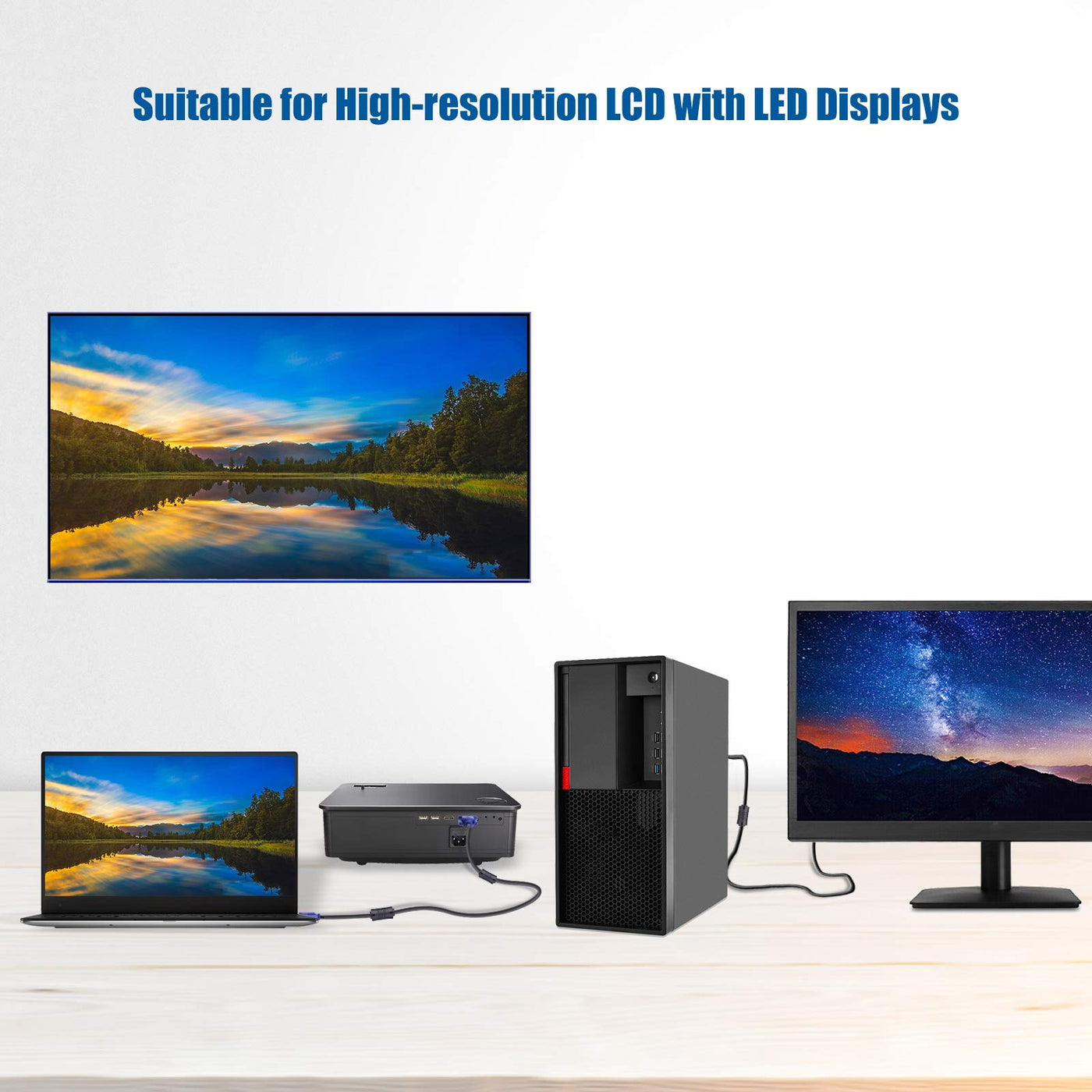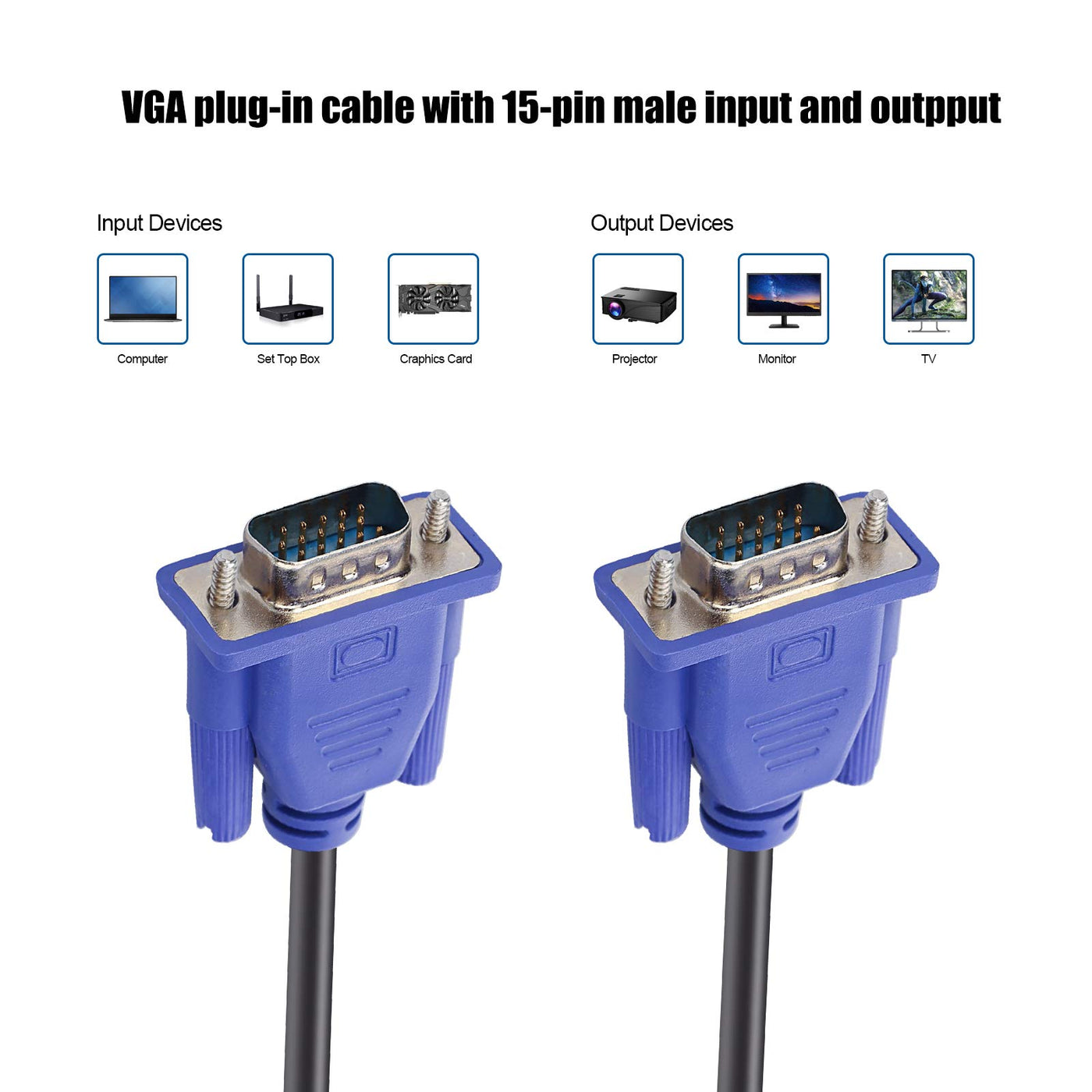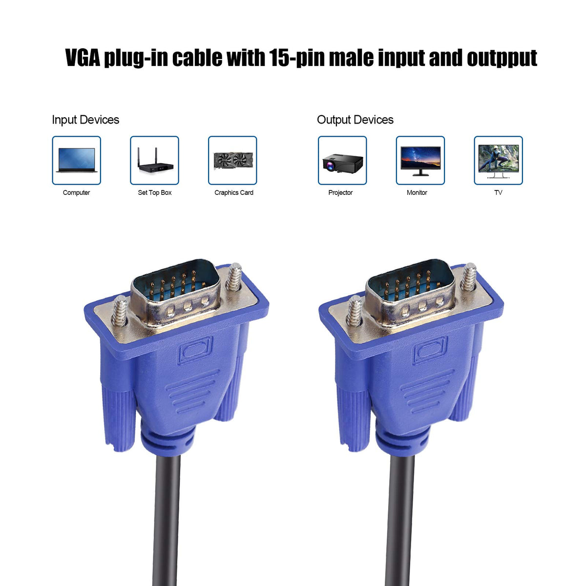 Vga Cables Are Ideally Suited For High Resolution Vga Applications. This High Resolution Vga Monitor Cable Is Designed To Provide The Highest Video Quality Possible Through Vga Specifications: Vgauge: 28 Awg.Vjacket: Pvc.Vcable Length Approximate :1.5 Meters / 4.9 Feet;Package: 1X Pack (4.9Ft ) Vga To Vga Cable.V Apply For Any Devices With A Vga(15-Pin) Interface :Led/Lcd Monitor,Projector,Pc,Laptop,Tv Etc.V Usage :Connects Pc Or Laptop To The Projector, Lcd Monitor, And Other Video Display System Through Vga Connections.V Connector :Hddb15 15-Pin (Male To Male).Screw-In Vga Cable With 15-Pin Male Input And Output.Extended Male-To-Male Vga Video For Your Monitor.V Resolutions : Supports Svga (800X600) ,Xga (1024X768) , Uxga (1600X1200), Wsxga (1680X1050), 1080P Full Hd(1920X1080) And Up For High Resolution Lcd And Led Monitors.
