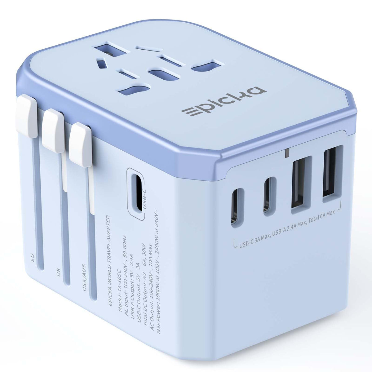 Epicka Universal Travel Adapter, International Power Plug Adapter With 3 Usb C And 2 Usb A Ports, All In One Worldwide Wall Char