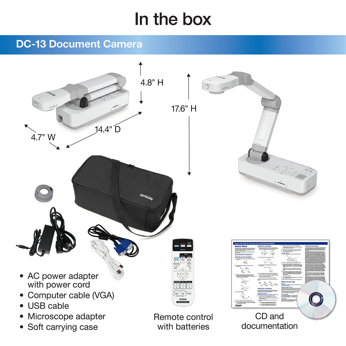 Epson Dc-13 High-Definition Document Camera With Hdmi, 16X Digital Zoom And 1080P Resolution,White