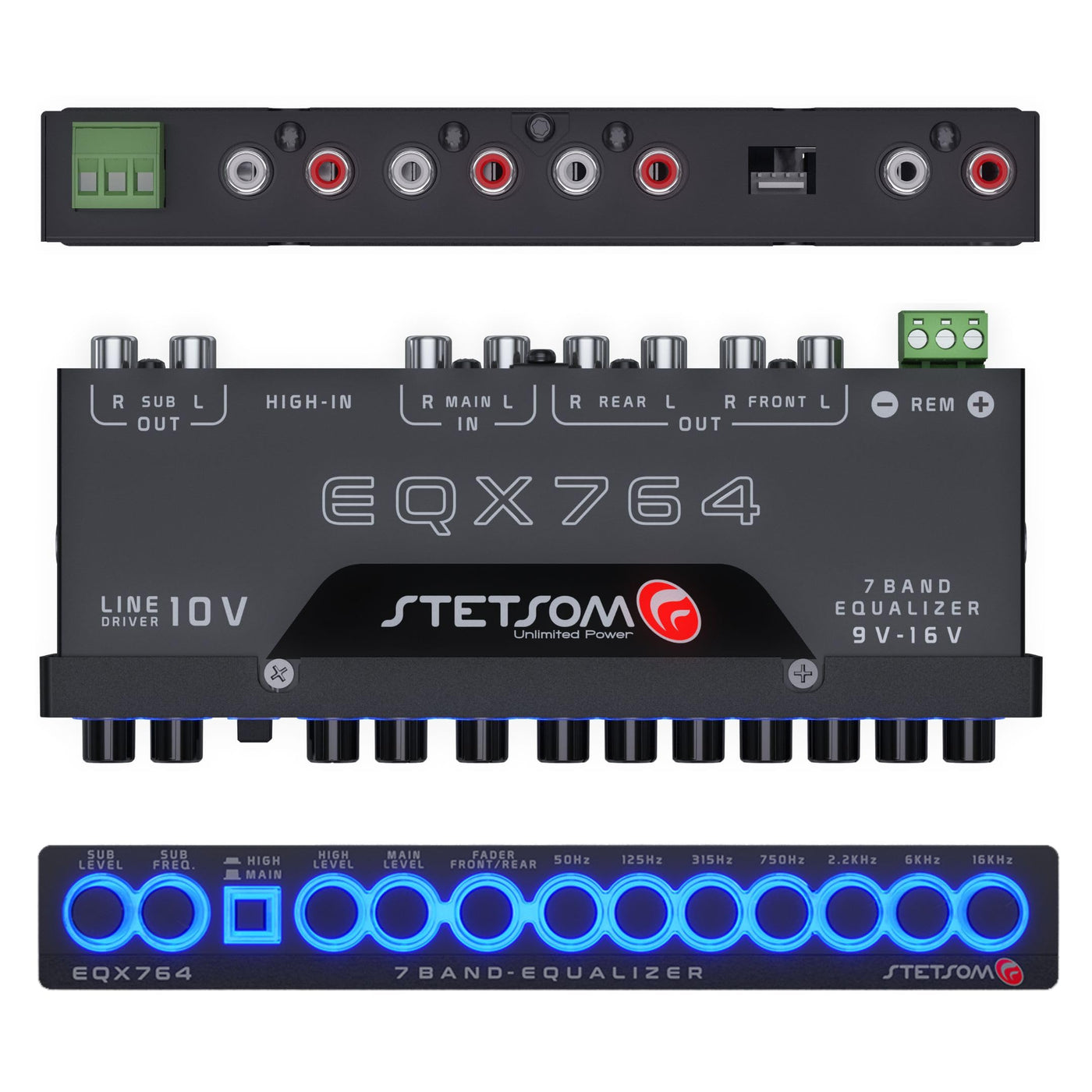Eqx764 7 Band Equalizer, Pre Amp Car Audio Graphic Equalizer With 4 Inputs (Rca & High) 6 Outputs, 10V Line Driver To Avoid Nois