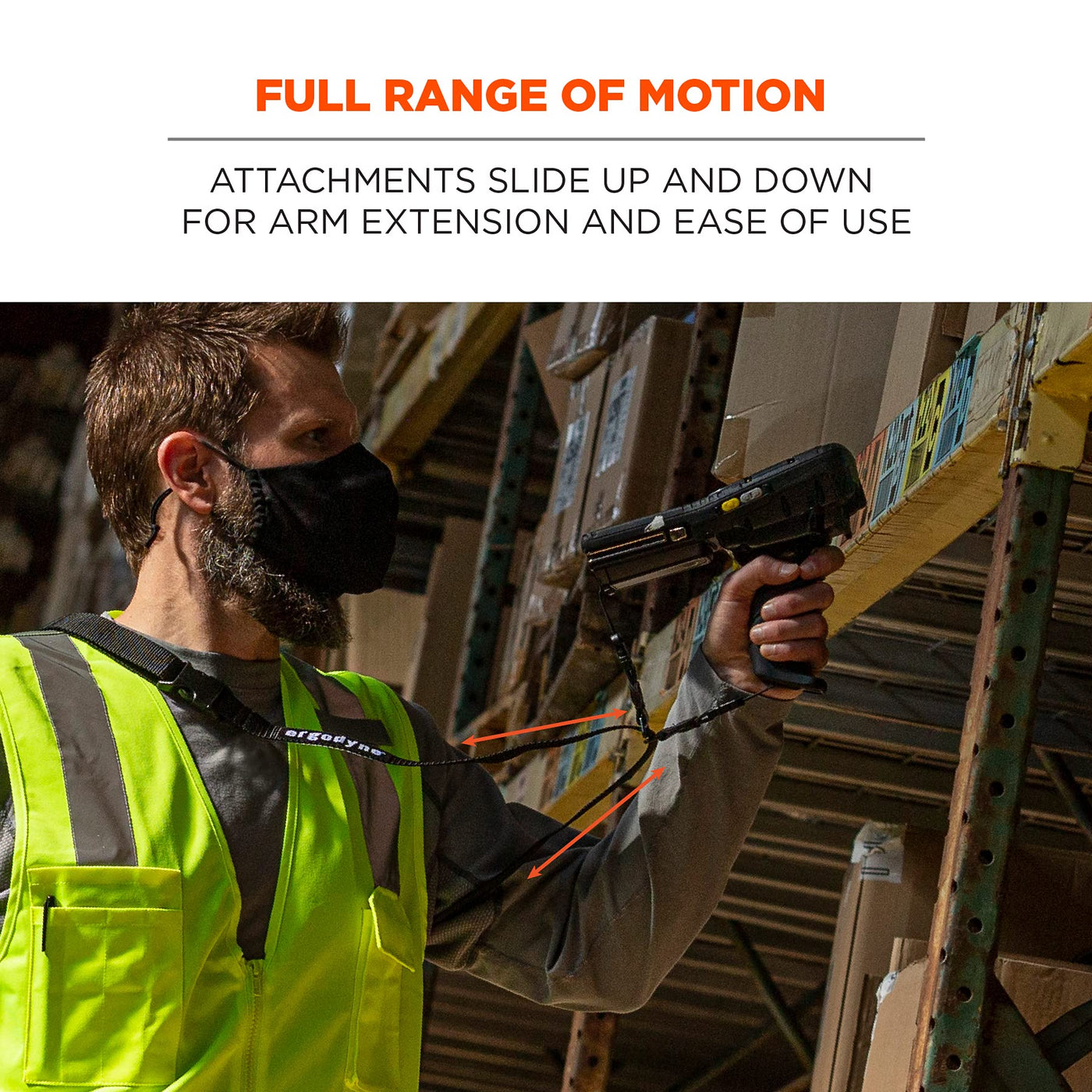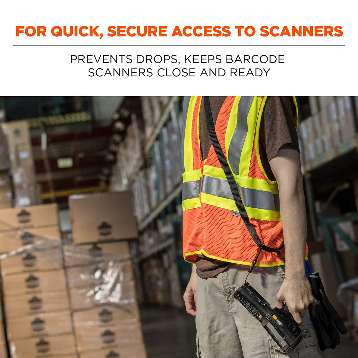 Ergodyne Squids 3134 Barcode Scanner Harness, Sling Style, Tethering Lanyard For Bar Code Scanners , Black