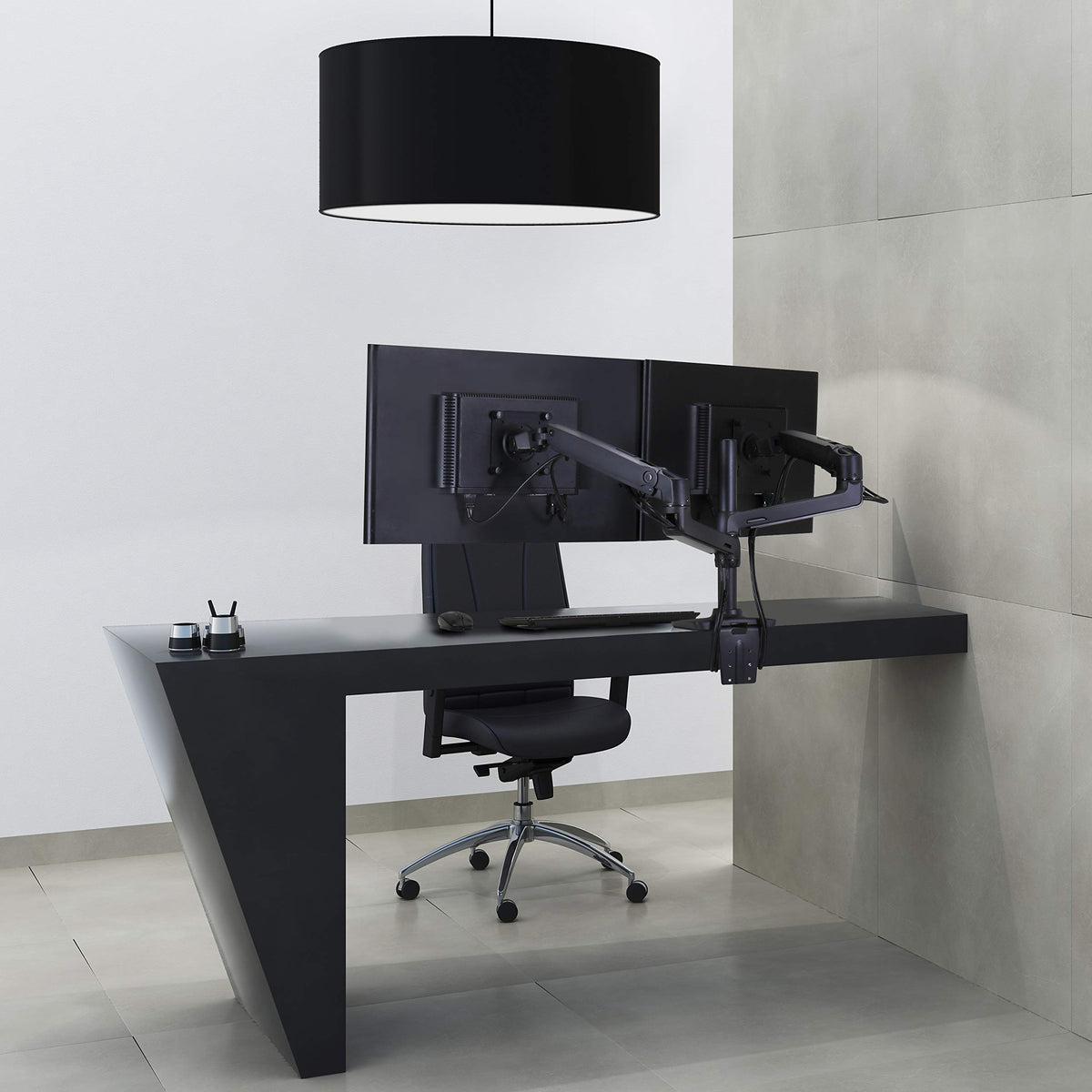 The LX Dual Stacking Arm saves desk space and positions monitors for the most comfort and productivity. This dual monitor mount uses patented Constant Force technology for easy adjustment. Up, down, forward or backward, an LX monitor arm adapts for your best view. Independent movement for each arm creates a new level of monitor placement flexibility. Made of durable aluminum and steel and put through rigorous quality tests, it�s backed by an industry-leading 10-year warranty.