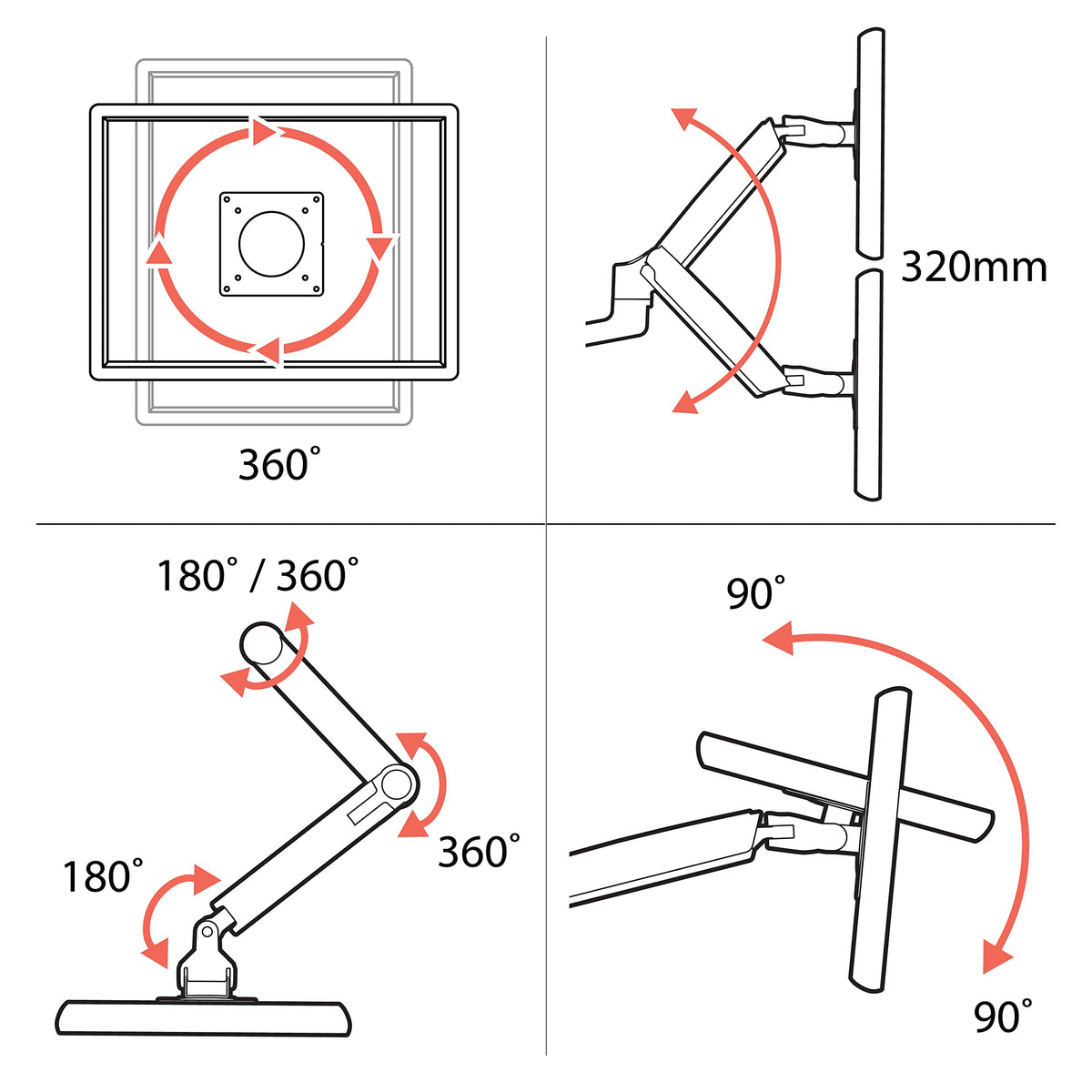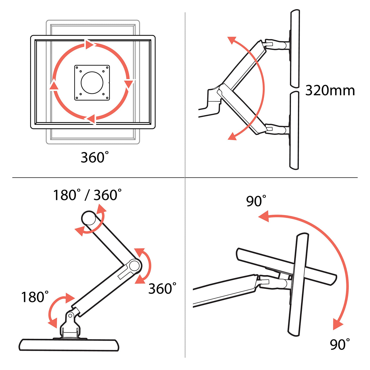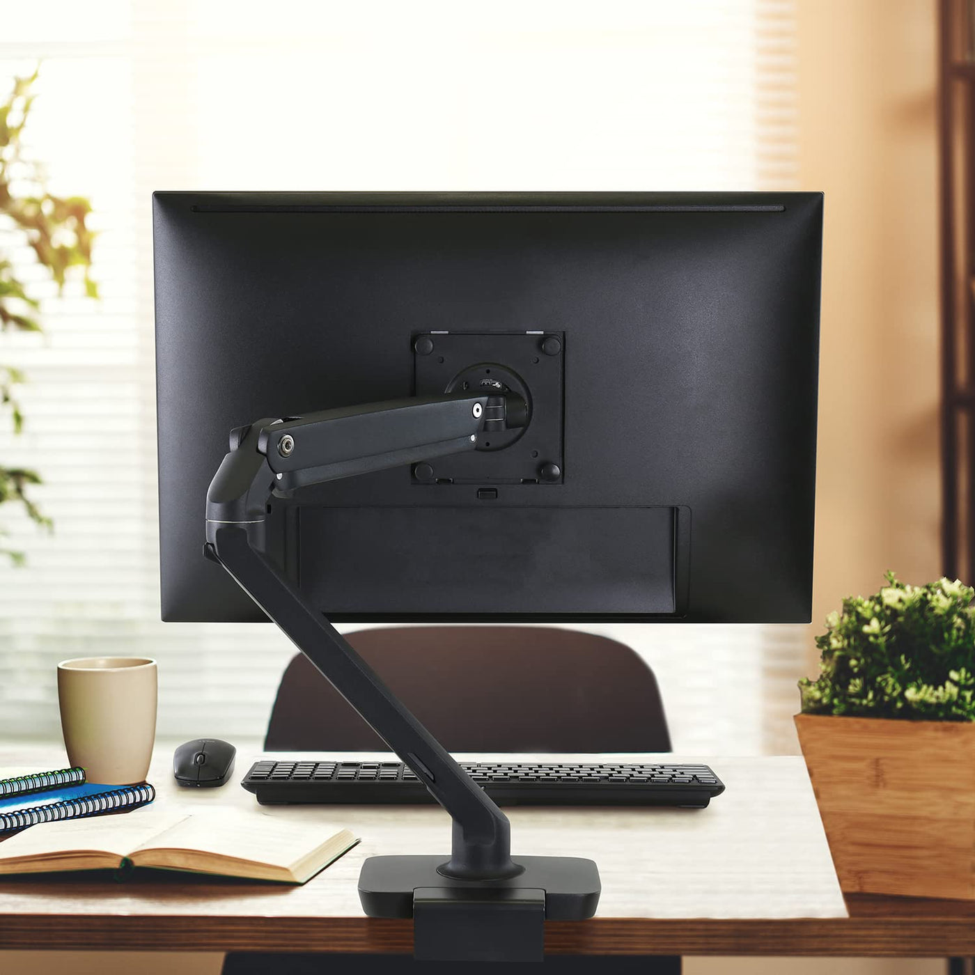 Broad compatibility: Fits single screens up to 34 inches diagonal and 7 to 20 pounds; compatible with VESA patterns 75x75mm and 100x100mm | Fully assembled and ready to install: Includes two-piece desk clamp for panel and cubicle systems, plus freestanding tables; desk clamp attaches to desktops 0.47 to 1.25 inches thick; accessory grommet mount available (98-110) to install through a desk surface hole | Comfortable working: Offers full monitor movement with 13 inches of lift, rising 18.5 inches from the worksurface; customize how you work or collaborate with 360 degrees of rotation and 180 degrees of tilt | Stylish and functional: Modern V-shaped design is sleek and lightweight; low-profile clamp fits in tight spaces; creates a neat workspace with thoughtful cable management; supports a laptop instead of a monitor with an accessory Notebook Tray (50-193-200) | Built to last: Extensive quality testing ensures your display stays stable and secure; Ergotron products set the standard for quality with a 10-year warranty and expert technical support�