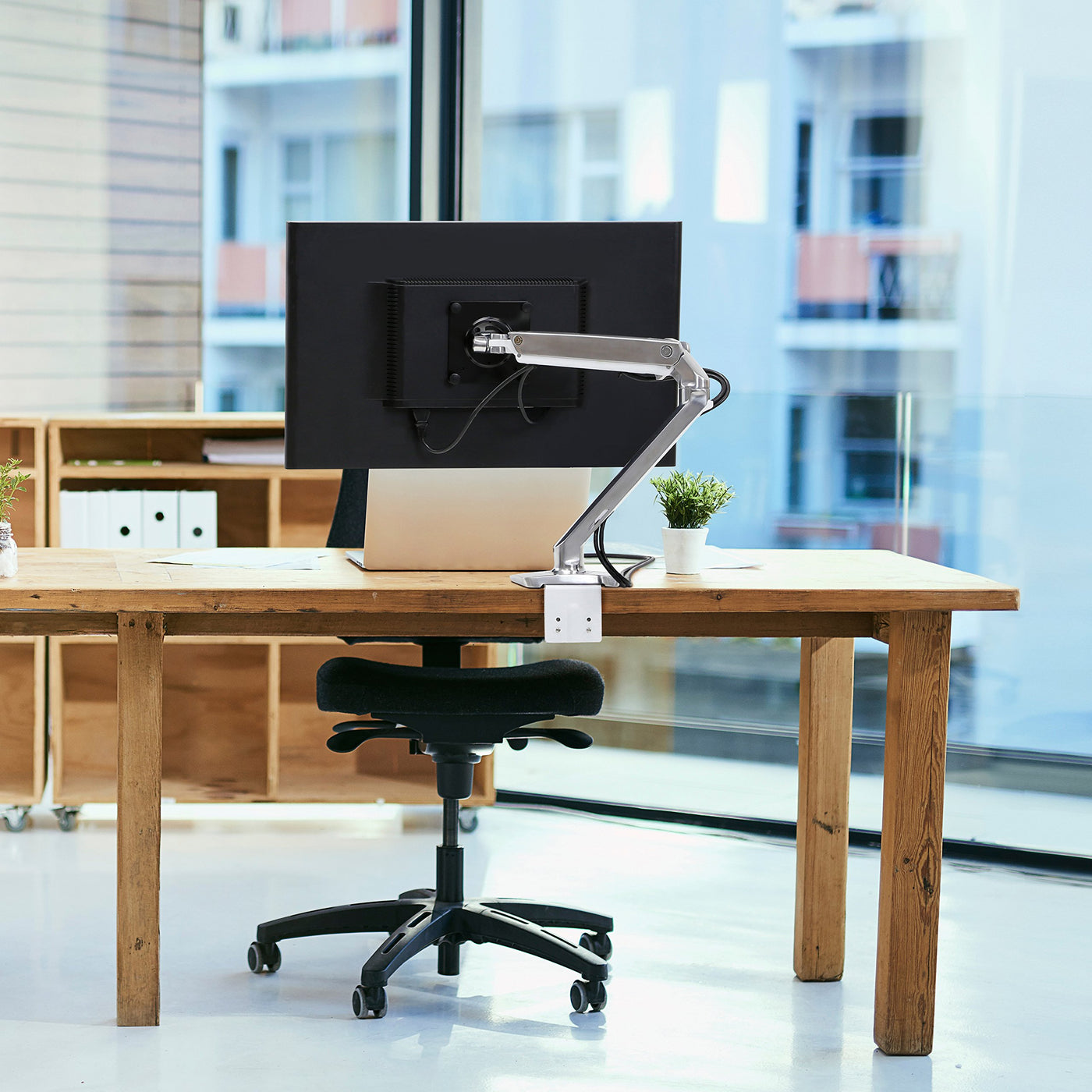 Broad compatibility: Fits single screens up to 34 inches diagonal and 7 to 20 pounds; compatible with VESA patterns 75x75mm and 100x100mm | Fully assembled and ready to install: Includes two-piece desk clamp for panel and cubicle systems, plus freestanding tables; desk clamp attaches to desktops 0.47 to 1.25 inches thick; accessory grommet mount available (98-110) to install through a desk surface hole | Comfortable working: Offers full monitor movement with 13 inches of lift, rising 18.5 inches from the worksurface; customize how you work or collaborate with 360 degrees of rotation and 180 degrees of tilt | Stylish and functional: Modern V-shaped design is sleek and lightweight; low-profile clamp fits in tight spaces; creates a neat workspace with thoughtful cable management; supports a laptop instead of a monitor with an accessory Notebook Tray (50-193-200) | Built to last: Extensive quality testing ensures your display stays stable and secure; Ergotron products set the standard for quality with a 10-year warranty and expert technical support�