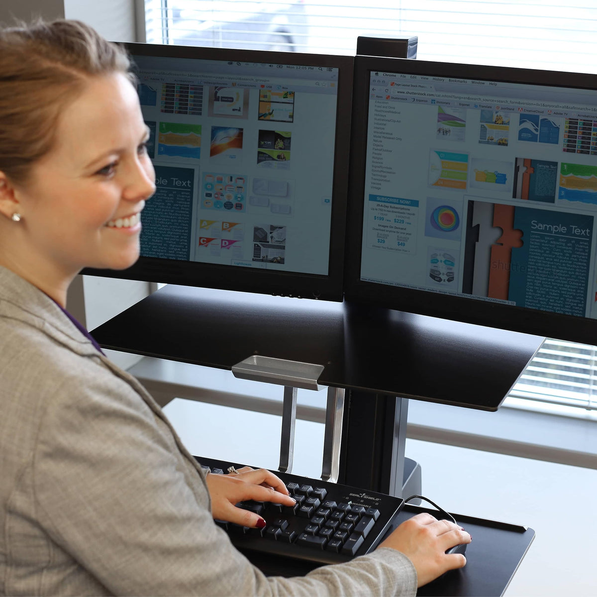 Ergotron � WorkFit S Dual Monitor Standing Desk Converter, Sit Stand Workstation for Tabletops � with Worksurface, Black