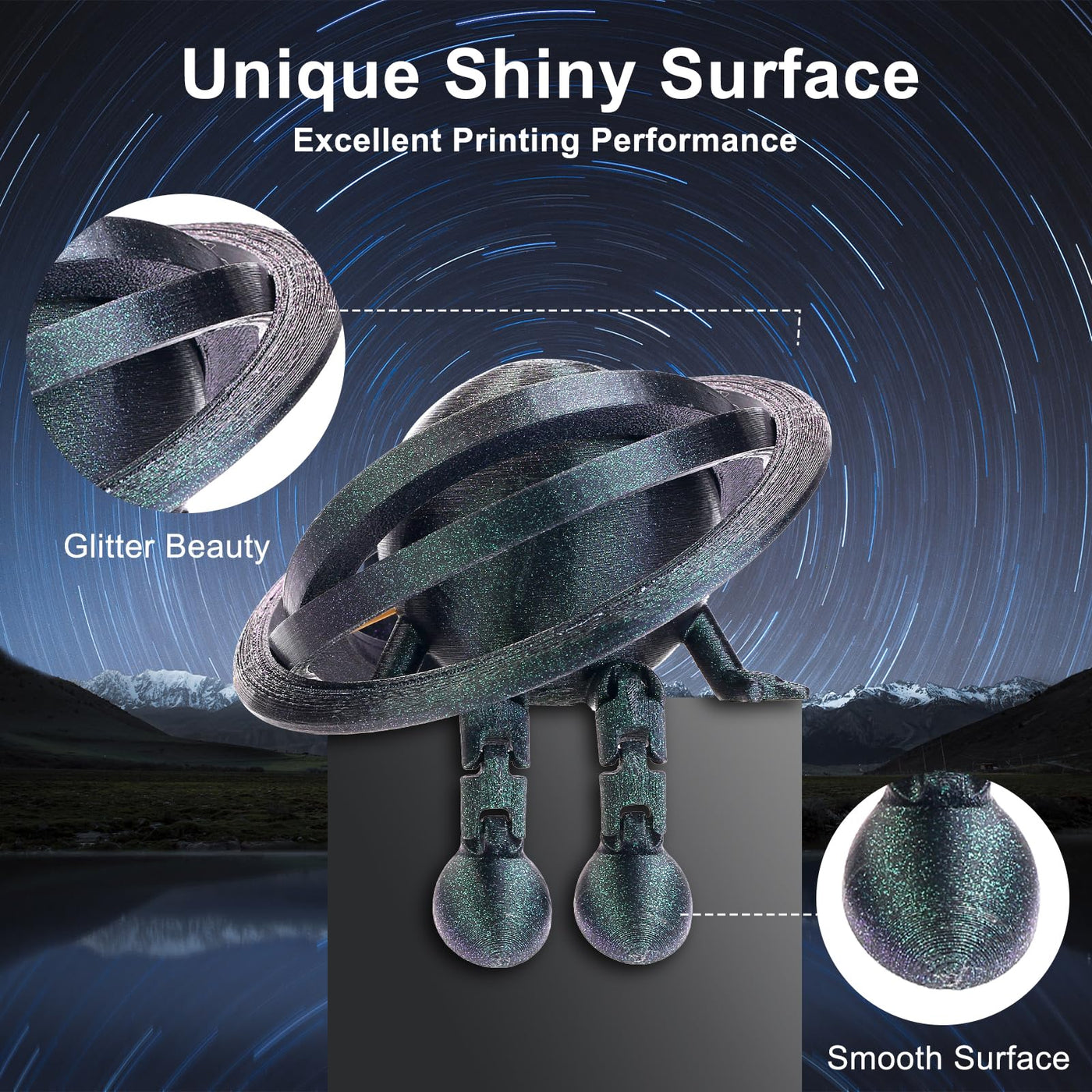 Eryone Glitter Pla Filament For 3D Printer, 1.75Mm +/-0.03Mm, 1Kg(2.2Lbs)/Spool, Bipolaris Nebula (Green)