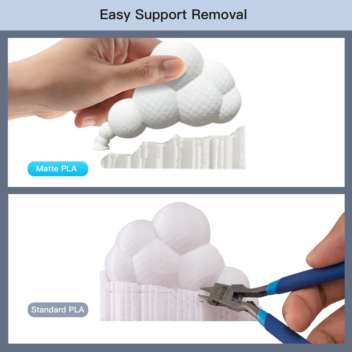 Q: What are the storage recommendations for ERYONE Matte PLA filament?A: For optimal performance, store the ERYONE Matte PLA filament in a cool environment with temperatures below 32°C and humidity levels under 40%. This helps prevent moisture absorption and maintains filament quality.