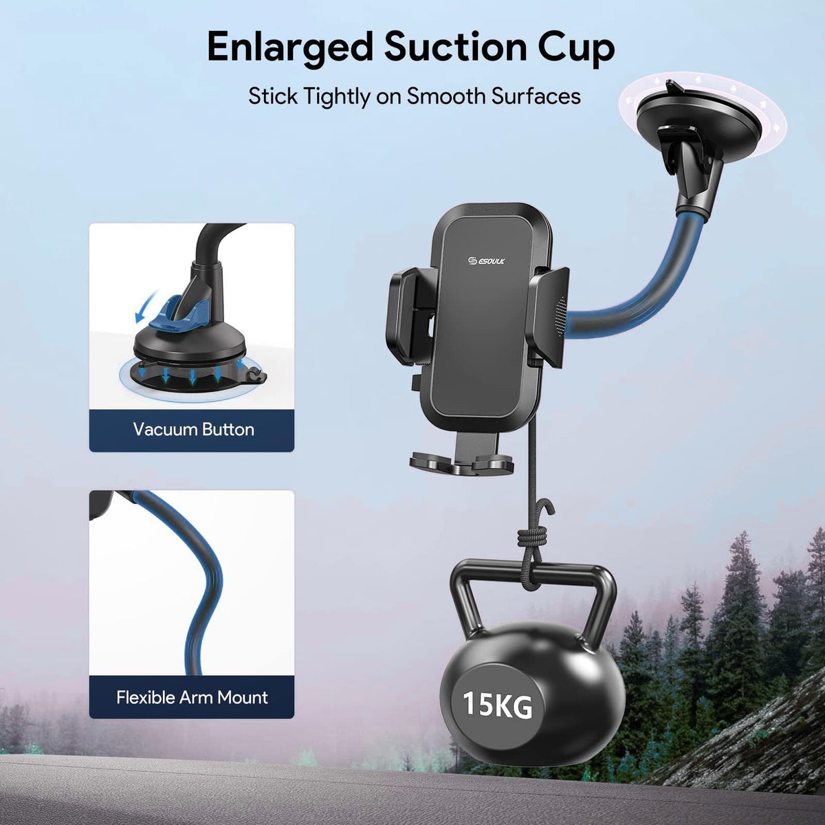 Esoulk 11-Inch Gooseneck Car Phone Holder,Heavy Duty Phone Holder For Truck, Flexibile Long Arm Anti Shake Stabilizer Windshield