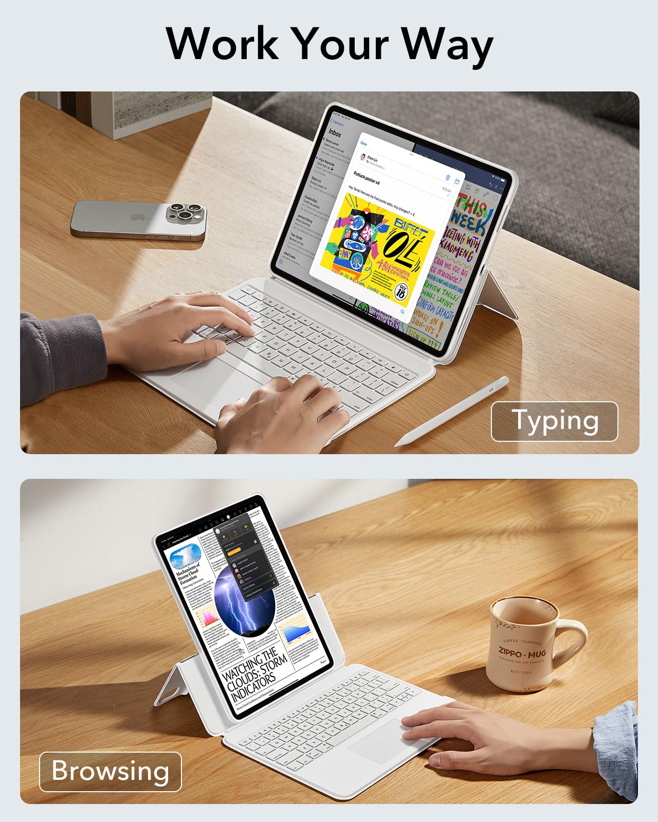 Esr Ascend For Ipad Air 13 Inch 2024, Keyboard Case With Trackpad, Magnetic Detachable Keyboard With Backlit Keys, Fully Adjusta