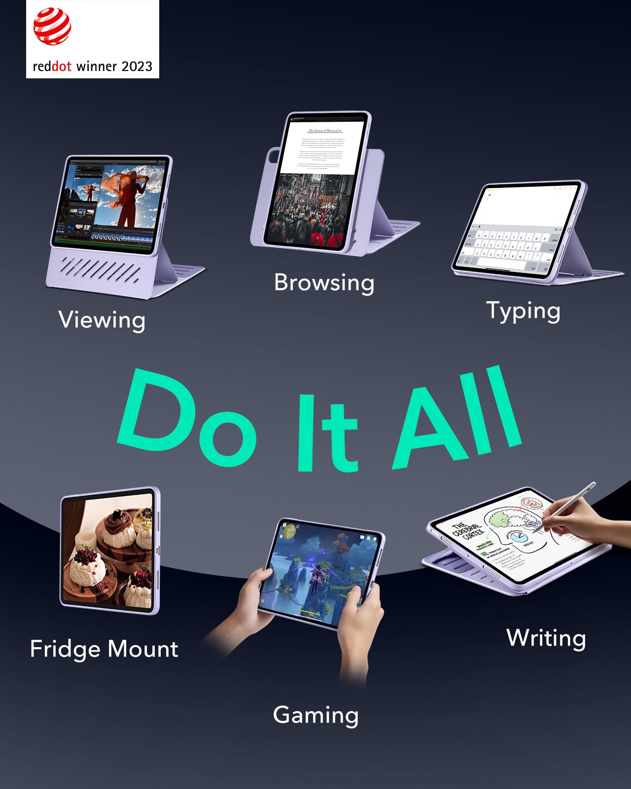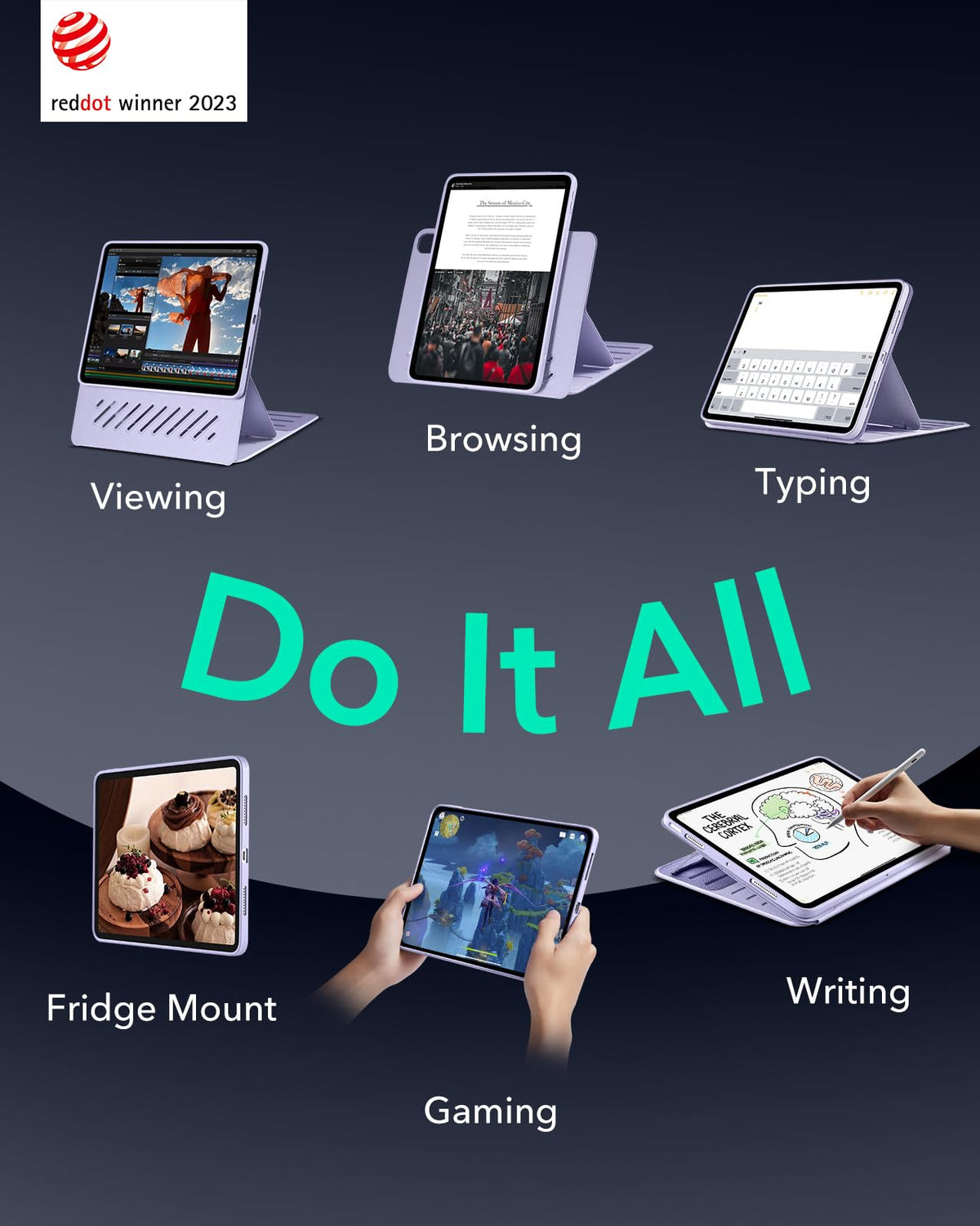 Esr For Ipad Air 13 Inch Case (2025/2024) M3/M2, Removable Magnetic Cover, Adjustable Portrait/Landscape Stand With Raised Screen View, 9 Standing Angles, Shift Series, Light Purple