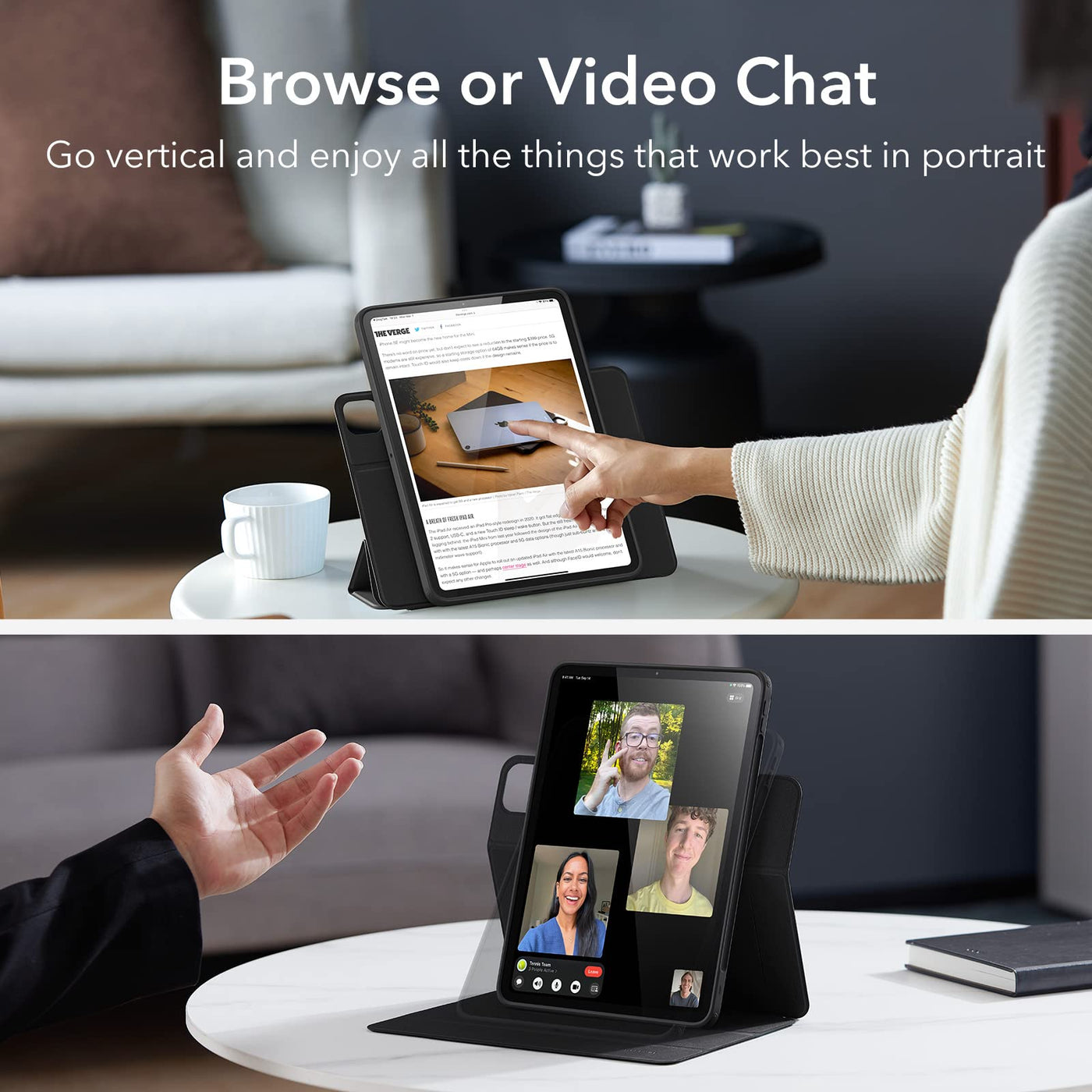 Esr For Ipad Pro 11 Inch Case (2022/2021/2020/2018, 4Th/3Rd/2Nd/1St Generation) With Pencil Holder, Removable Magnetic Cover, Vertical Stand, Rebound 360 Series, Black