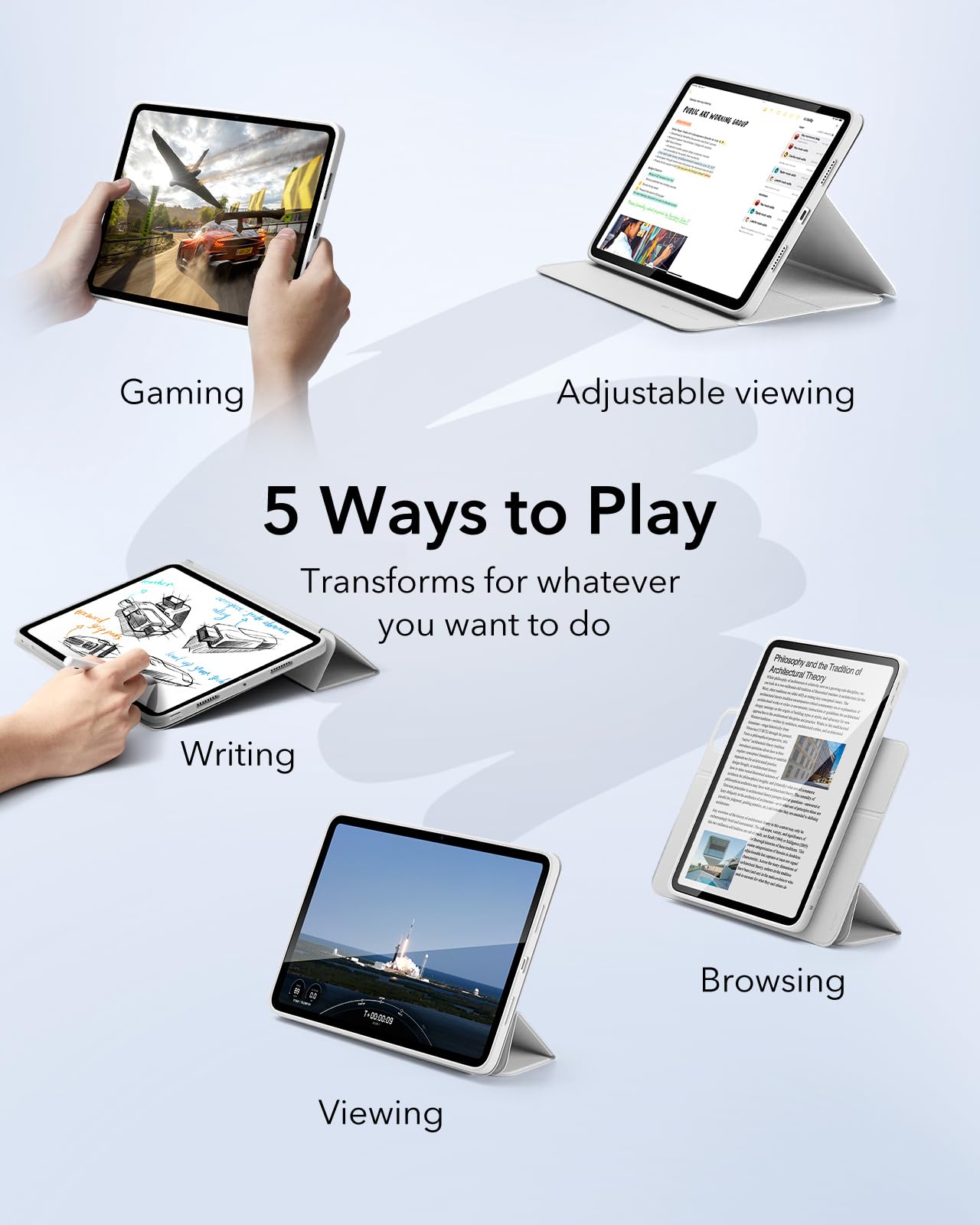 Esr For Ipad Pro 11 Inch Case M4(2024, 5Th), Ipad Pro 11 Case With Pencil Holder, Removable Magnetic Cover, Vertical Stand, Fully Supports Pencil Pro&Pencil(Usb-C), Rebound 360 Series, Brilliant White