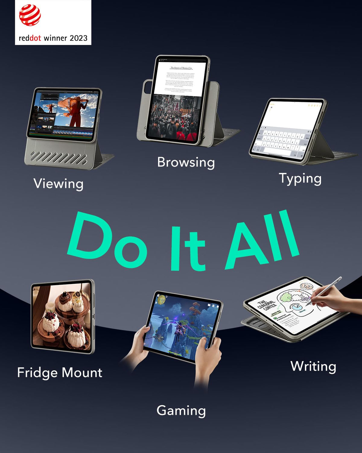 Esr For Ipad Pro 11 Inch Case 2024 M4 (5Th Generation), Rotating Case With Removable Magnetic Cover, Adjustable Portrait/Landscape Stand With Raised Screen View, 9 Standing Angles, Titanium