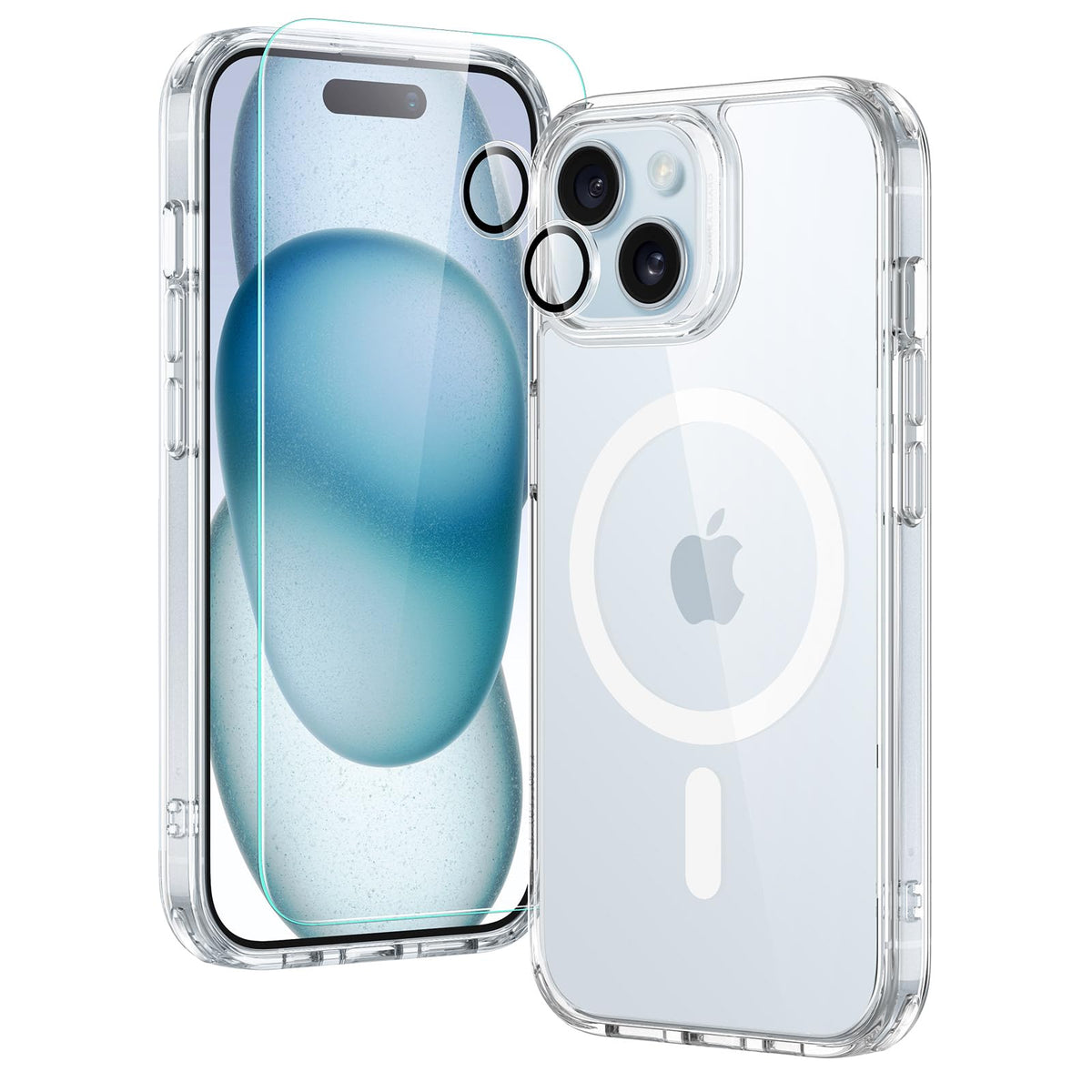 Esr For Iphone 15 Plus Case Set,1 Tempered-Glass Screen Protector,1 Set Of Lens Protectors,Military-Grade Protection,Yellowing And Scratch Resistant Compatible With Magsafe Case,Classic Series,Clear
