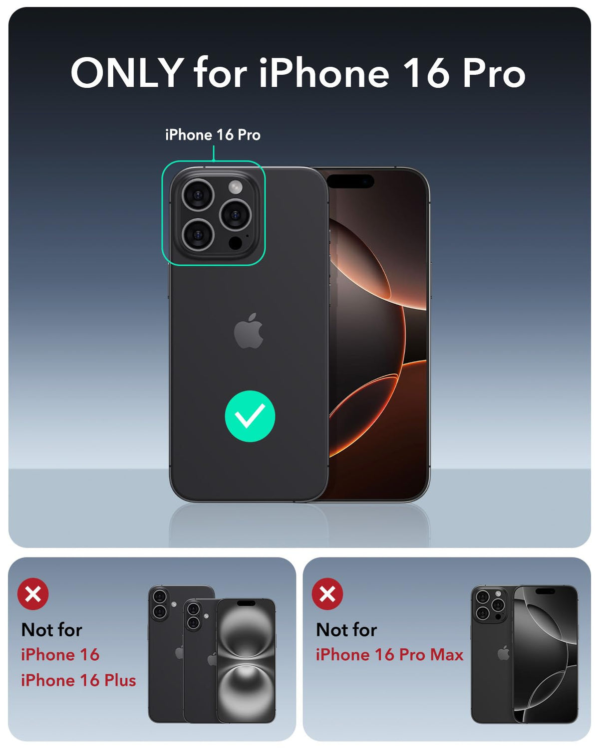Q: What level of drop protection does the ESR case provide?A: The ESR case offers military-grade drop protection, tested to withstand drops from up to 23 feet, ensuring your iPhone 16 Pro is well-protected from impacts and scratches.