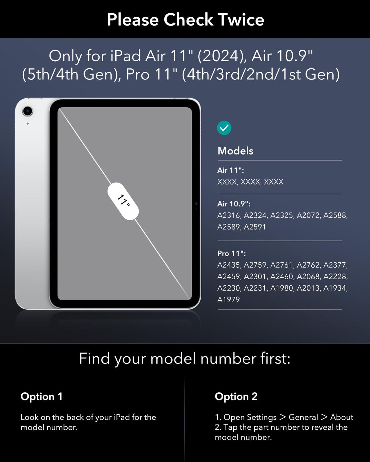 Q: What iPad models are compatible with the ESR iPad Air 11 Inch Case with Keyboard?A: The ESR iPad Air 11 Inch Case with Keyboard is compatible with the iPad Air 11 inch (2024), iPad Air 6th Generation (2024), iPad Pro 11 inch (2022/2021/2020/2018), iPad Air 5th Generation (2022), and iPad Air 4th Generation (2020). Ensure your model matches the listed compatibility for optimal performance.