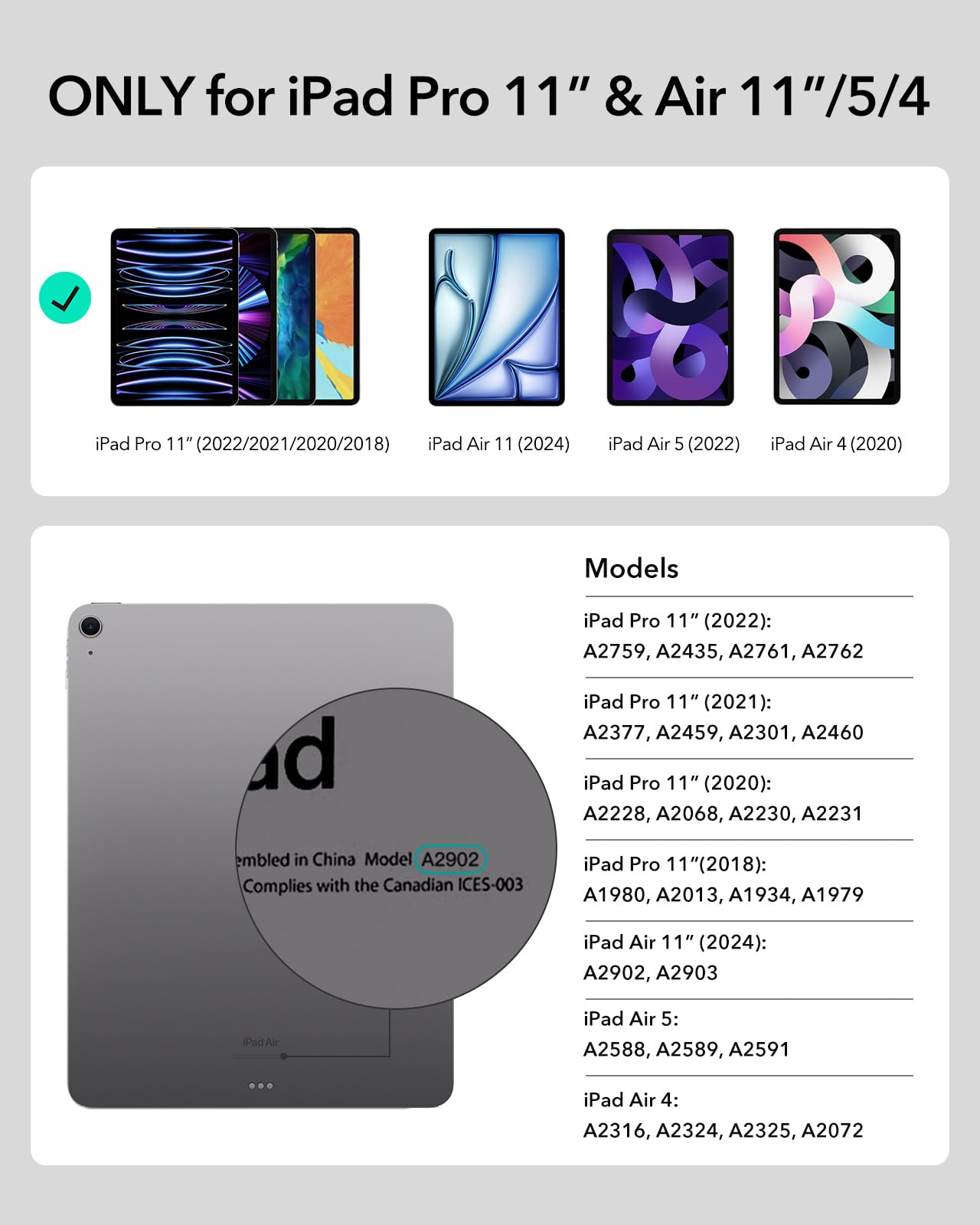 Compatibility: Only Compatible With Ipad Air 11 Inch(2024), Ipad Air 6Th Generation (2024), Ipad Pro 11 Inch (2022/2021/2020/2018), Ipad Air 5Th Generation (2022), And Ipad Air 4Th Generation (2020); Models A2759, A2435, A2761, A2759, A2435, A2761, A2316, A2324, A2325, A2072, A2377, A2459, A2301, A2460, A2068, A2228, A2230, A2231, A1980, A2013, A1934, And A1979 | Work From Anywhere: Upgrade Your Ipad To Getting Stuff Done Mode And Embrace The Remote Work Revolution With Full Macbook Functionality Built Right Into Your Case | Easy-Set Magnetic Stand: The Floating Cantilever Design Allows Your Ipad Pro 11/Ipad Air 5/4 To Float Stylishly Over Your Keyboard And Gives You The Perfect Angle Just By Opening The Case | Navigate Quickly And Easily: The Precision Trackpad With Full Multi-Touch Gesture Support Lets You Browse The Web, Build Presentations, And Edit Documents At Unparalleled Speed | Control At Your Fingertips: The Full Row Of Shortcut Keys Take This Ipad Pro 11/Ipad Air 5/4 Keyboard Case To The Next Level By Letting You Snap That Screenshot, Control Your Audio, Or Go Back To The Home Screen From The Keyboard | Complete Customer Support: Detailed Setup Videos And Faqs, Comprehensive 12-Month Warranty, Lifetime Support, And Personalized Help