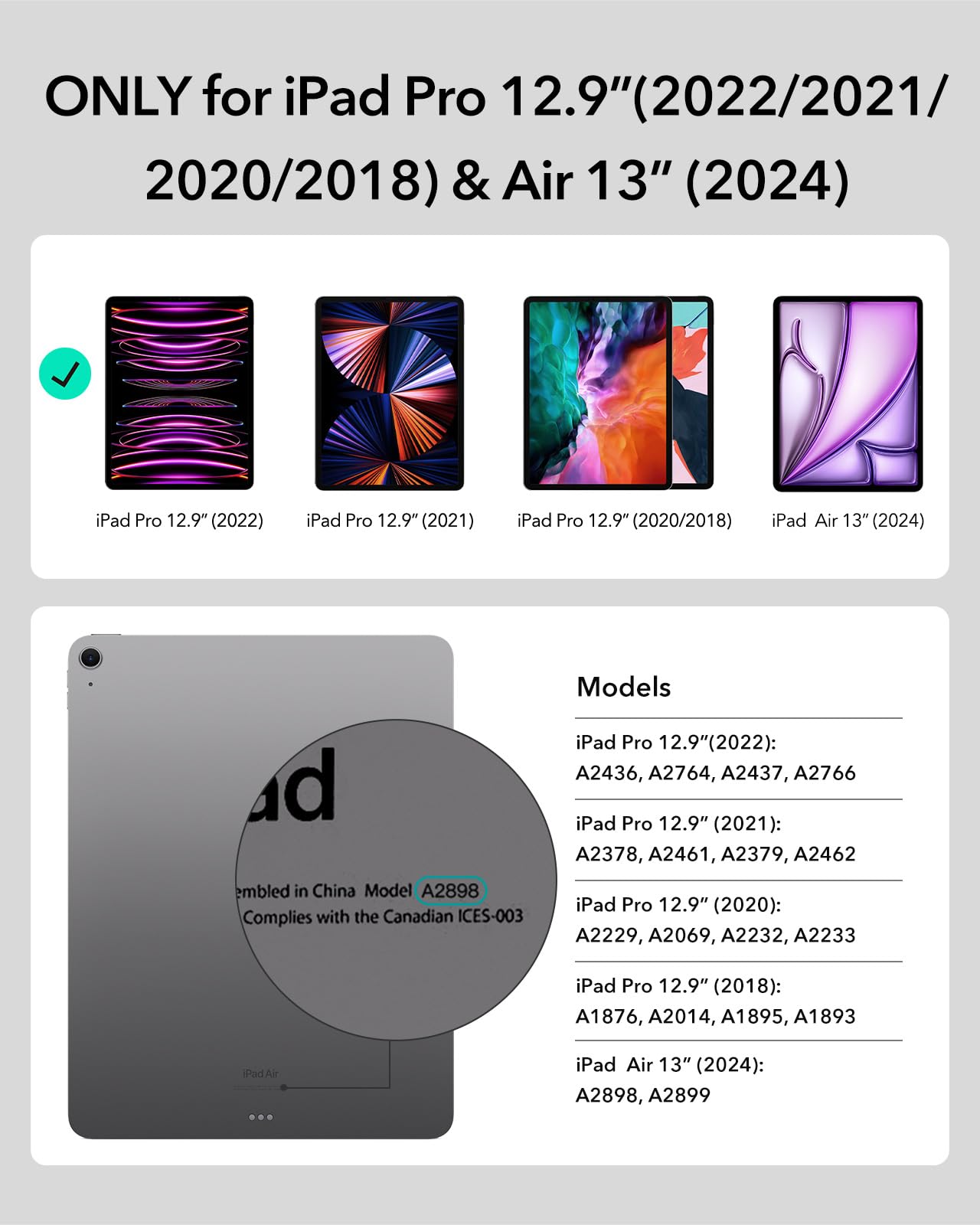 Compatibility: Only Compatible With Ipad Air 13, Ipad Pro 12.9 Inch (2022/2021/2020/2018); Models: A2764, A2437, A2436, A2378, A2379, A2461, A2462, A2229, A2069, A2232, A2233, A1876, A2014, A1895, A1983 | Work From Anywhere: Upgrade Your Ipad To Getting Stuff Done Mode And Embrace The Remote Work Revolution With Full Macbook Functionality Built Right Into Your Case | Easy-Set Magnetic Stand: The Floating Cantilever Design Allows Your Ipad Pro 12.9 To Float Stylishly Over Your Keyboard And Gives You The Perfect Angle Just By Opening The Case | Navigate Quickly And Easily: The Precision Trackpad With Full Multi-Touch Gesture Support Lets You Browse The Web, Build Presentations, And Edit Documents At Unparalleled Speed | Control At Your Fingertips: The Full Row Of Shortcut Keys Take This Ipad Pro 12.9 Keyboard Case To The Next Level By Letting You Snap That Screenshot, Control Your Audio, Or Go Back To The Home Screen From The Keyboard | Complete Customer Support: Detailed Setup Videos And Faqs, Comprehensive 12-Month Warranty, Lifetime Support, And Personalized Help