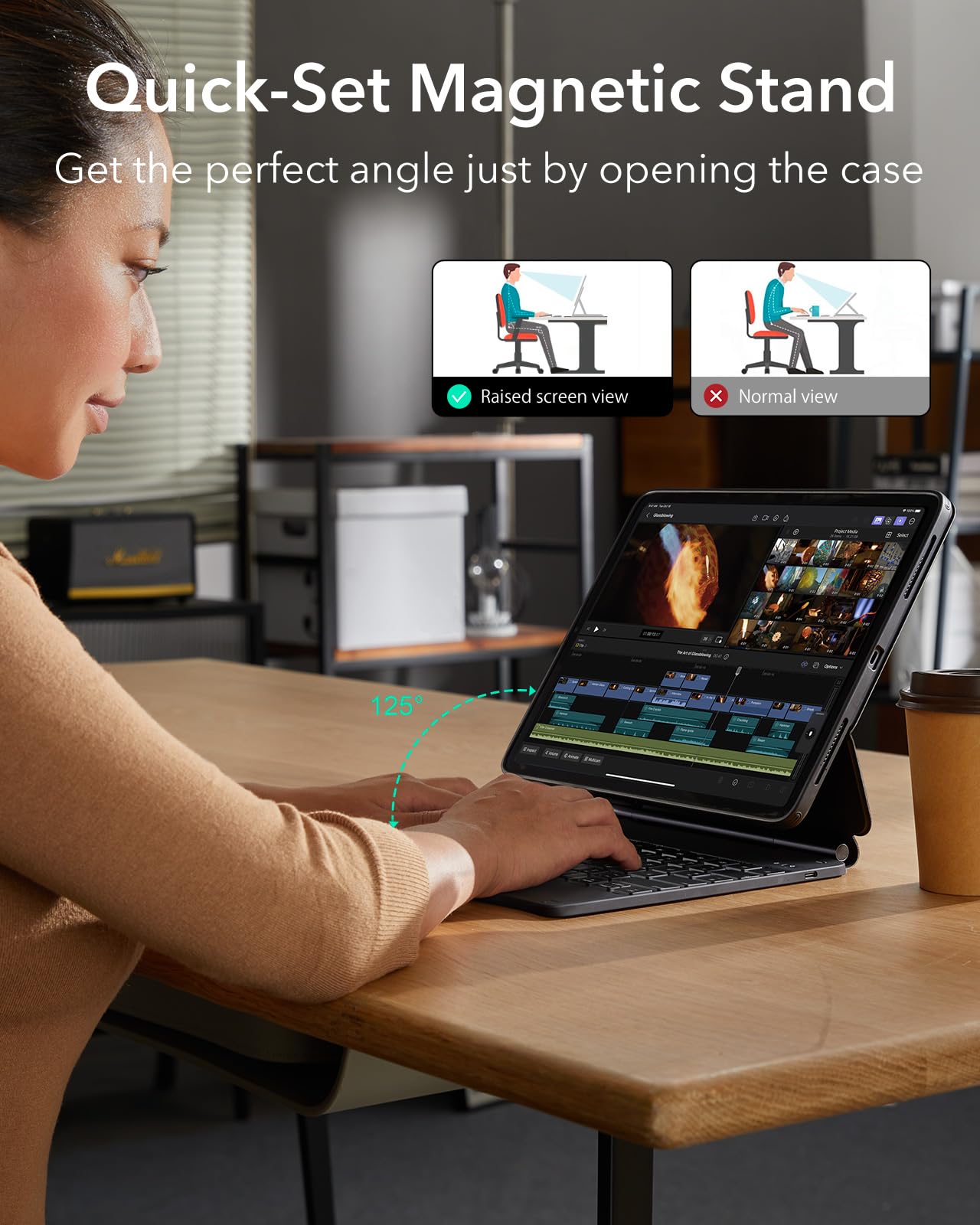 Esr Ipad Pro 13 Inch Case With Keyboard (M4, 2024), Ipad Pro 13 Keyboard Case With Easy Set Magnetic Stand, Portrait/Raised Mode