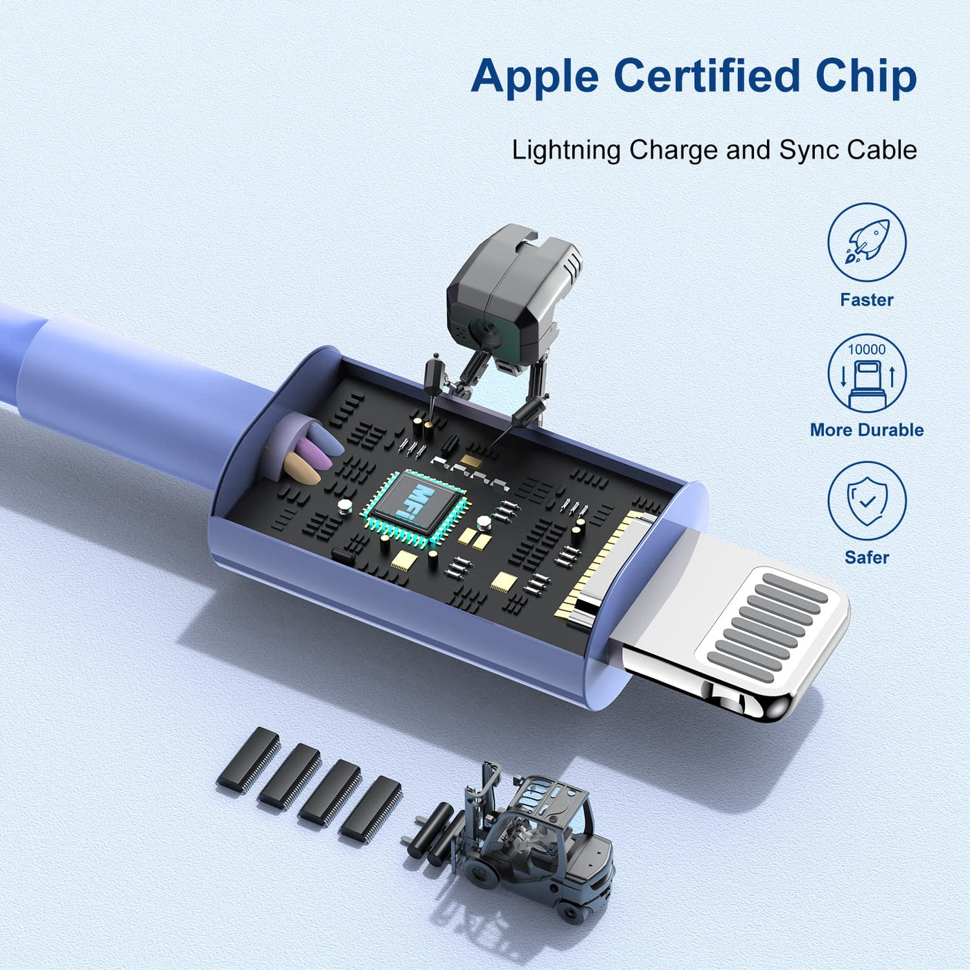 Essri For Iphone Charger 10 Ft 3Pack Blue, Usb To Lightning Cable 10 Foot, Extra Long Fast Charging Cord 10 Feet Compatible With