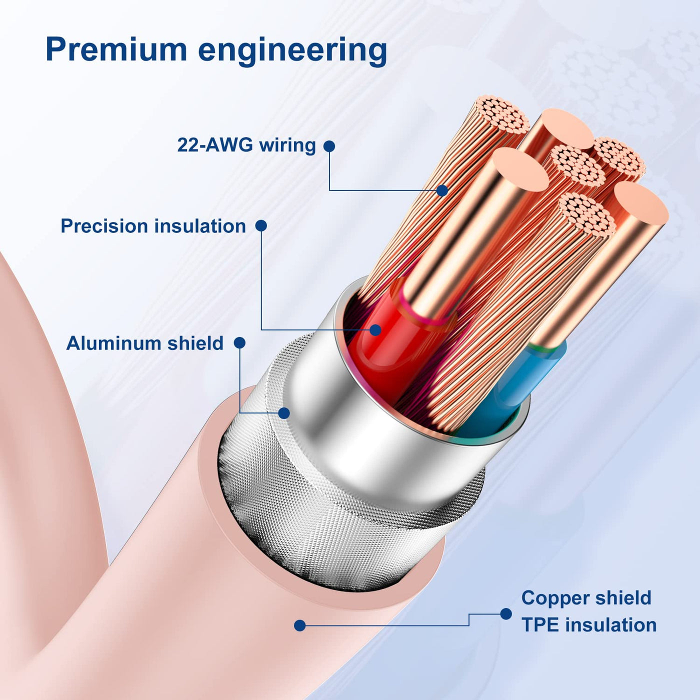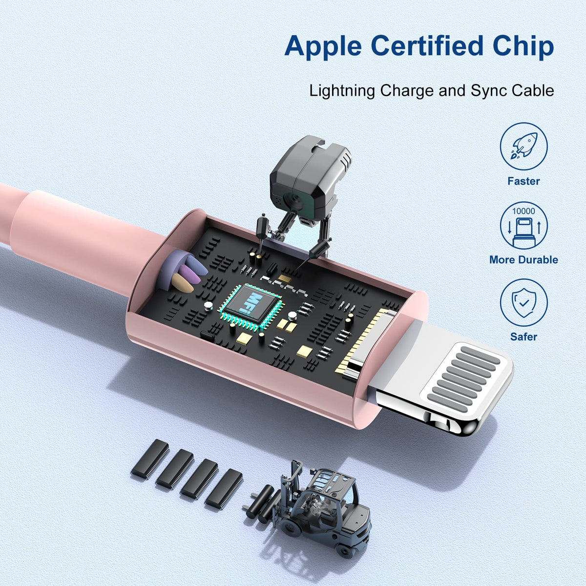Essri For Iphone Charger 10 Ft 3Pack Pink, Usb To Lightning Cable 10 Foot, Extra Long Fast Charging Cord 10 Feet Compatible With