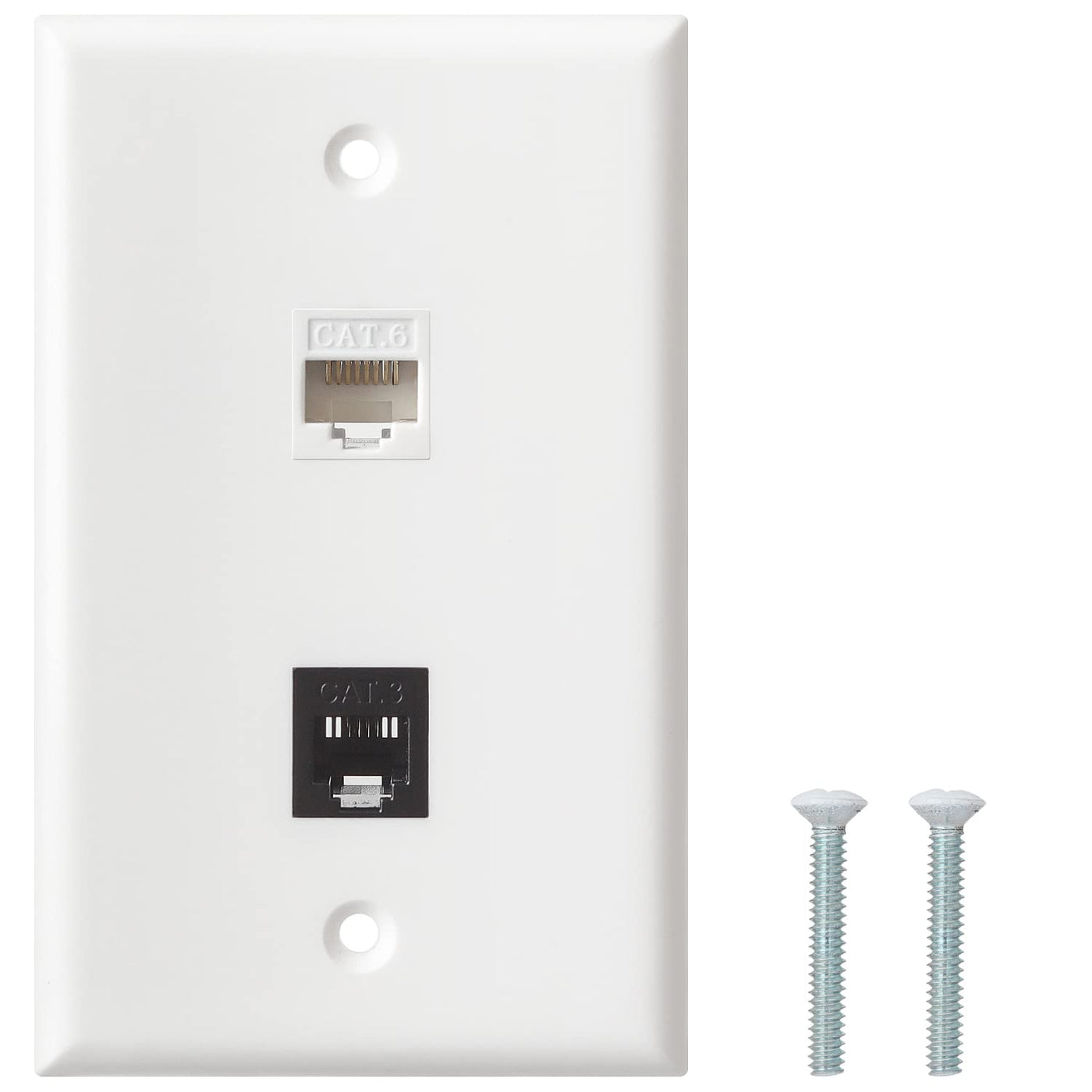 Q: Can I use this wall plate for both Ethernet and phone connections?A: Absolutely! This wall plate features one port for Cat6 Keystone connections and another for RJ11/RJ12 phone connections, allowing you to connect both types of devices seamlessly.