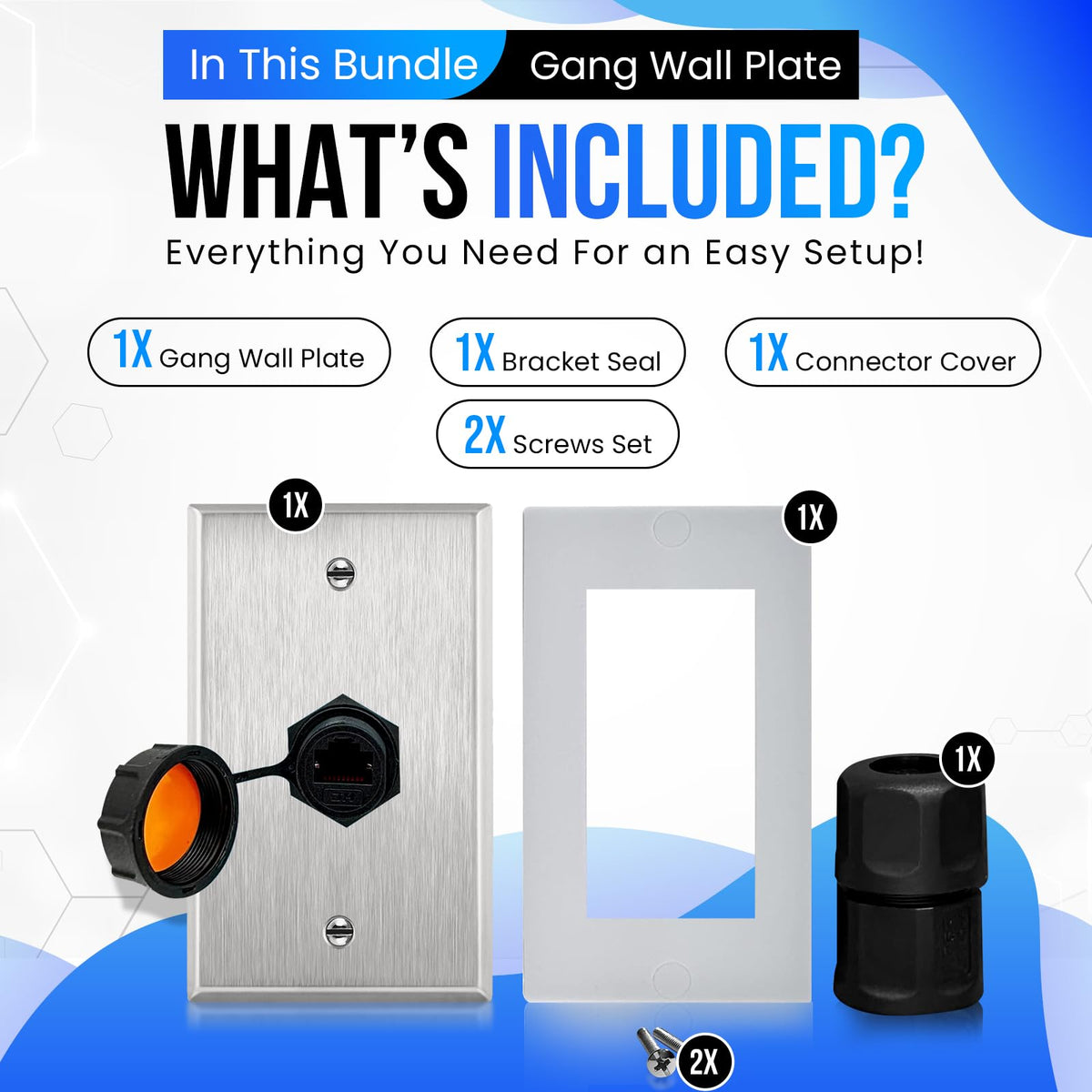 Ets Industrial Grade Single Gang Outdoor Ethernet Wall Plate Is The Perfect Solution For Your Networking Applications In Harsh Environments Such As Humid Weather, Open-Air Applications, Production, And Commercial Facilities. Ets Outdoor Ethernet Wall Plate Is Widely Used By Businesses Located Along The Coastline, Beach Bars, Chain Restaurants In Their Commercial Kitchens, Ports, And Marinas Across The Usa, Amusement Parks, Museums, Manufacturing Facilities, And More. Our Outdoor Wallplates Come With A Cable Sleeve, Mounting Screws, And Preassembled Waterproof Ethernet Bulkhead Connector Ip67 Rated And Compatible With Outdoor Cat6 Cabling And Is Cross-Compatible With Cat5E And Cat5 Ethernet Cable. The Bulkhead Inline Waterproof Rj45 Coupler Connector With The Ip67 Rated Cable Sleeve Makes It Easy To Install Outdoor Ethernet Cable And Keep It Protected From The Elements. Ets Stainless Steel Outdoor Ethernet Wall Plate Are Corrosion-Resistant And Ip44 Rated. These Single Gang Industrial Wall Plates Are Available In 1-Port And 2-Port Configurations And Are Ip67 Rated.
