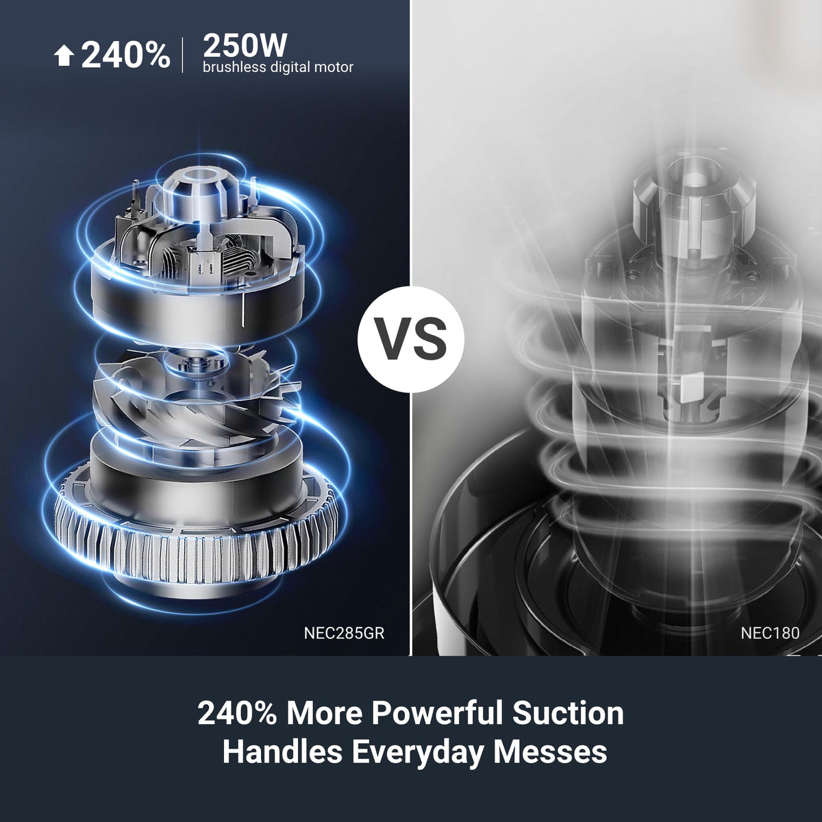 We Know You Value A Clean Home And Eureka Is Proud To Offer Whole Home Cleaning Solutions To Make Life A Little Easier.The Eureka Nec285Gr Is A Powerful And Convenient Battery-Operated Cordless Vacuum Cleaner That Can Keep Your Home Clean And Fresh.This Lightweight Stick Cordless Vacuum Cleaner Weighs Only 5.3 Lbs, Making It Easy To Maneuver And Carry Around. With Its Cordless Battery-Operated Vacuum Cleaner Technology, You Won'T Be Tethered To A Wall Socket.This Rechargeable Cordless Stick Vacuums Battery Delivers Up To 40 Minutes Of Uninterrupted Cleaning Time On A Single Charge, Providing Plenty Of Time To Tackle Even Biggest Cleaning Jobs, While The Easy Rest Feature And Included Wall Mount Allows Convenient Storage And Charging.This Wireless Vacuum Cleaner Is Also Incredibly Versatile With Led Headlight And Multiple Accessories, Which Allows Cleaning Every Nook And Cranny, From Car Interiors To Tight Spaces Between Furniture. Maintenance Is A Breeze With The Washable Filter, Which Can Be Easily Removed And Cleaned.Don'T Settle For A Bulky And Cumbersome Vacuum. Upgrade To The Eureka Nec285Gr Cordless Vacuum Cleaner Perfect For Your Home, And Enjoy The Convenience And Power Of A Stick Cordless Vacuum That Truly Delivers.