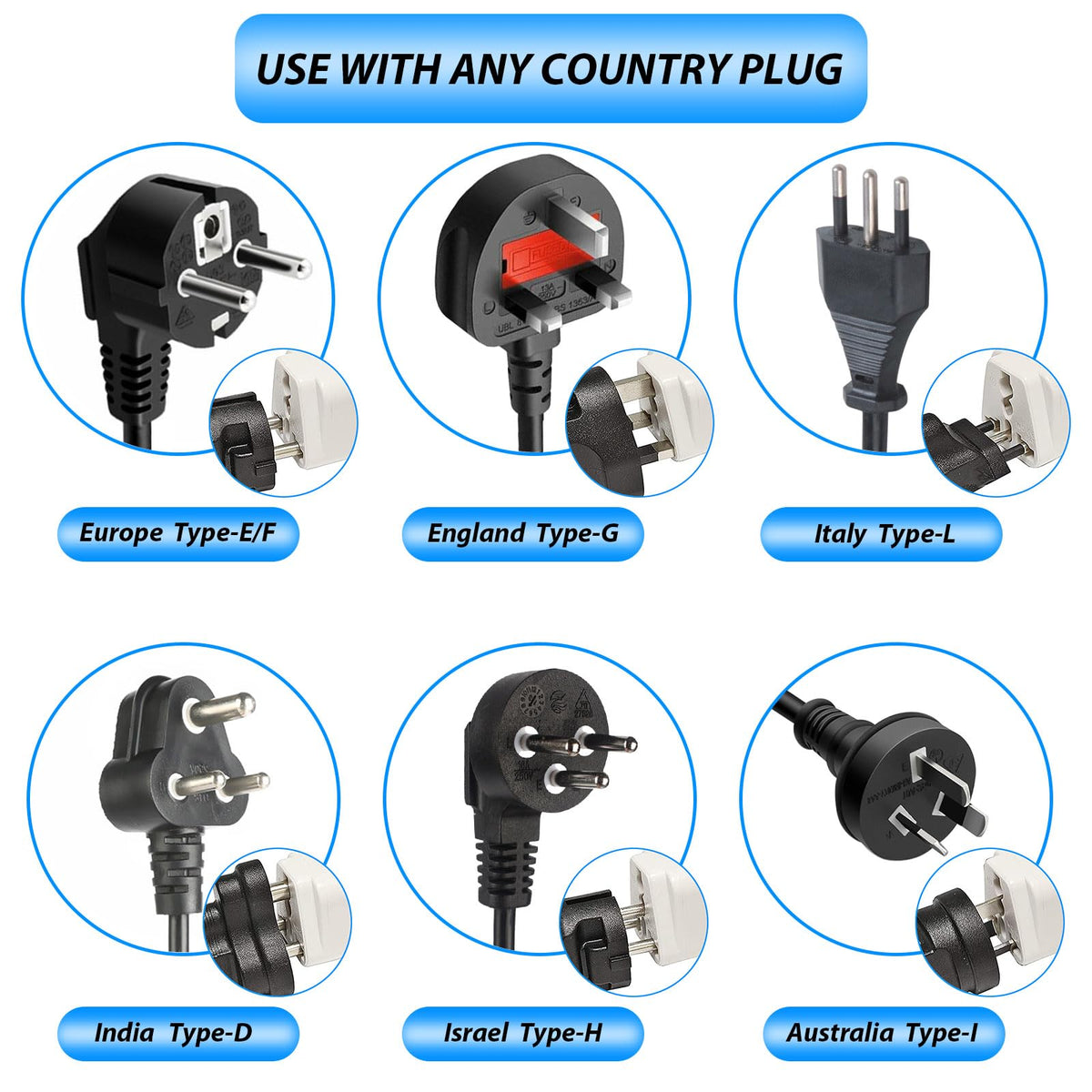 Q: Is this travel adapter safe for use in the US?A: Yes, this travel adapter is designed with safety in mind. It features copper pins and conductors, combined with a flame-resistant ABS shell, ensuring safe electrical use. It is rated for a maximum current of 10A and a maximum voltage of 250V.