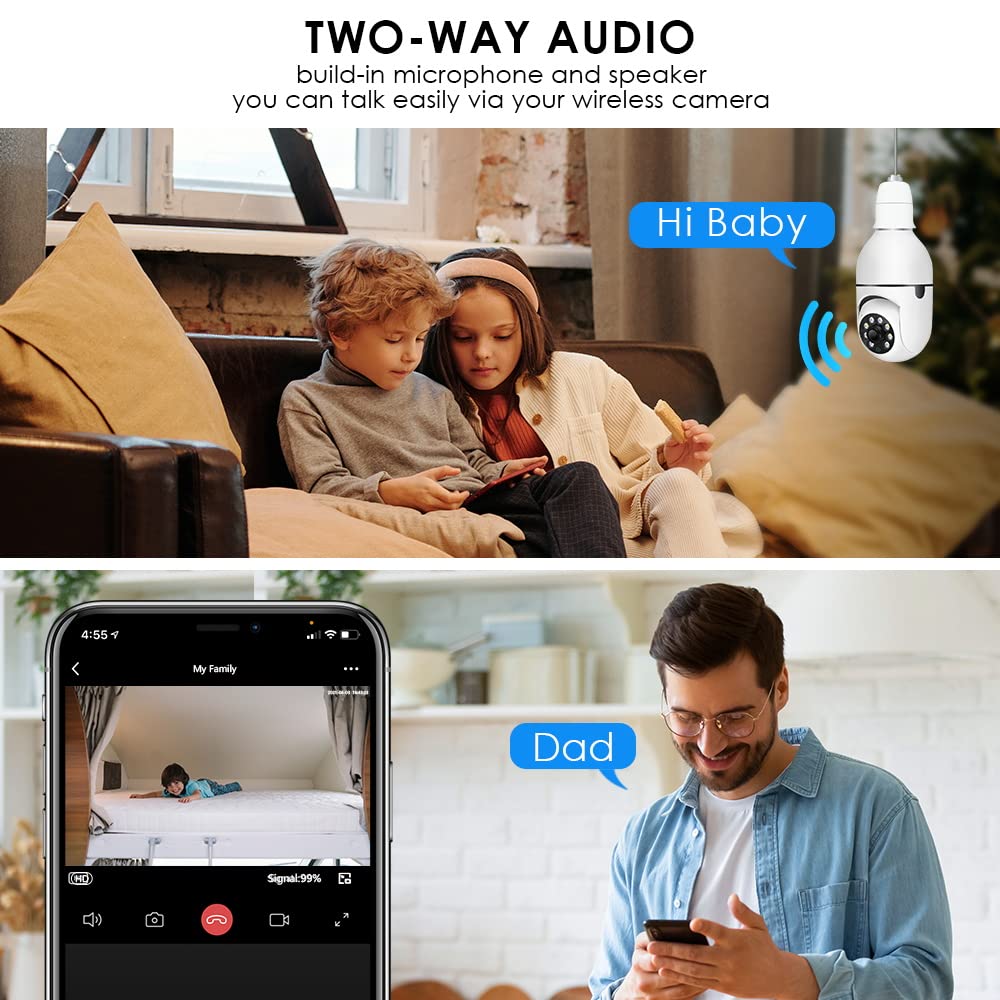 Eversecu 4Pack Hd 1080P Wireless Light Bulb Security Camera, Work With 2.4Ghz&5Ghz Wifi, Motion Auto Tracking, 2 Way Audio, Spot