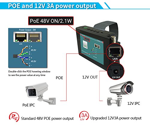 Overall: The 4 Inch Ips Touch Screen Ip Camera Tester Is Designed For Maintenance And Installation Of Ip Analog, Hd Coaxial Cameras As Well As Other Security Equipment. The 800*480 Resolution Enables It To Display Network Hd Cameras And Analog Cameras In High Resolution. The Unit Supports Many Network Ptz Cameras And Analog Ptz Control. The All In One Camera Tester Can Make A Safer Working Conditions And Increase Productivity. Features: *4 Inch Touch Screen, 800*480 Resolutions *H.265 & H .264 Ip, 4K Video Display Via Mainstream *Rapid Ip Camera Test, Auto Log In And Display Image, Create Testing Report *Axis, Hikvision Camera Test, Enter Ipc Test App, Input Username And Password To Test *8Mp Tvi/4Mp Cvi/5Mp Ahd *Cvbs Camera Test And Ptz Control *Ipc Test , Hik Test Tool (Hikvision Camera), Dh Test Tool (Dahua Camera) *Ip Discovery, Just By One Key To Detect All Network Cameras Ip Address And Auto Display *Dc12V 3A Power Output *Poe Dc48V Power Output, Max Power 24W *Innovative Coaxial Hd Focus, Video Signal Quality Test *10/100/1000M Ethernet, Network State And Traffic Display *Wrist Design, Portable And Easier To Carry *Network Tool: Ping Test, Ip Address Scan, Port Flashing Etc *Drop-Down Menu, Can Select Poe Power, Ip Setting, Cvbs, Lan Info Etc *Self -Update Software, You Can Install Apps With Android Version *Media Player, 4K Video Files And Mkv/Mp4 Media Files Play *Ptz Control Supports More Than 30 Protocols Such As Pelco-P, Pelco-D, And Samsung *Audio In, Support Record And Save The Audio/Led Lamp, Calculators, Music Players And Other Application Tools *7.4 V /2400Mah Lithium Ion Polymer Battery, After 4~5 Hours Charging, Working Time Lasts About 8 Hours Packing List: 1) Tester 3). Adaptor Dc12V/1A 4) 1Pcs Battery 5). Tool Bag / Dc12V Power Cable/Bnc Cable/ Rs485 Cable/ Audio Cable