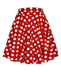 Exchic Womens Casual Stretchy Flared Mini Skater Skirt Basic A Line Pleated Midi Skirt (L, Polka Dot 3)