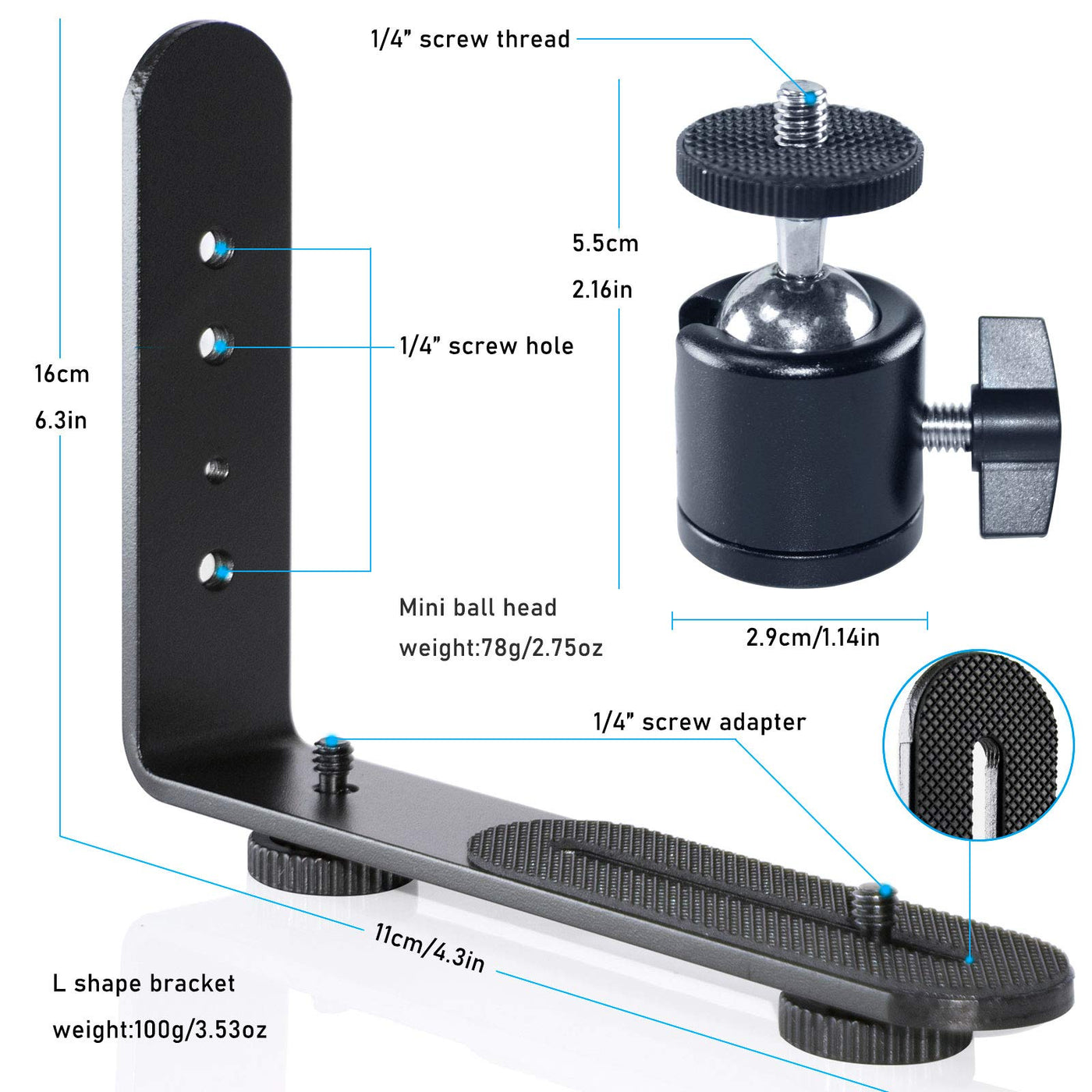 Exmax Metal Aluminum Alloy L Shape Flash Light Camera Bracket Holder 1/4 '' Screw + Mini Tripod 360 Degree Ball Head For Dslr Ca
