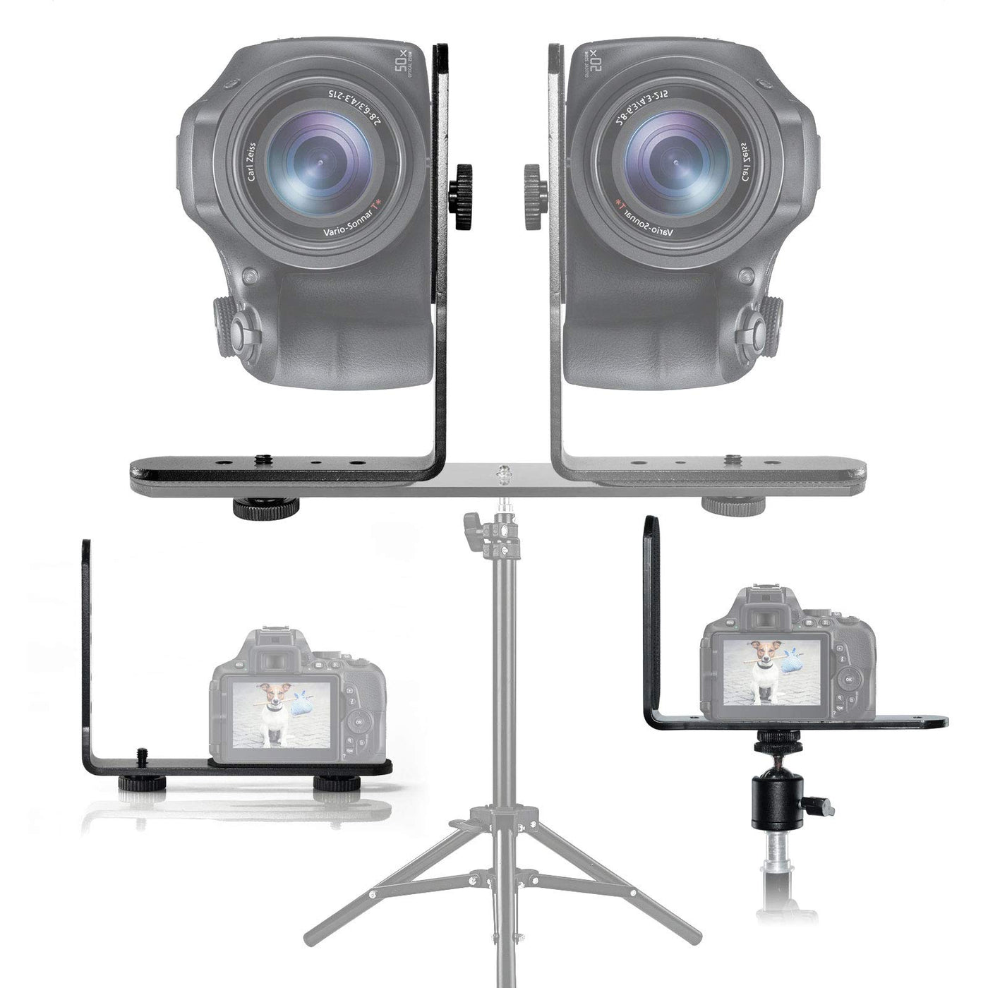 • Q: What cameras are compatible with the EXMAX® L-Shape Flash Light Camera Bracket? A: The EXMAX® L-Shape Flash Light Camera Bracket is compatible with a variety of cameras including DSLR, SLR, and digital video cameras, as well as flash units and on-camera lights. The dual 1/4" screw mounts allow for simultaneous attachment of both the camera and flash, making it a versatile accessory for any photography setup.
