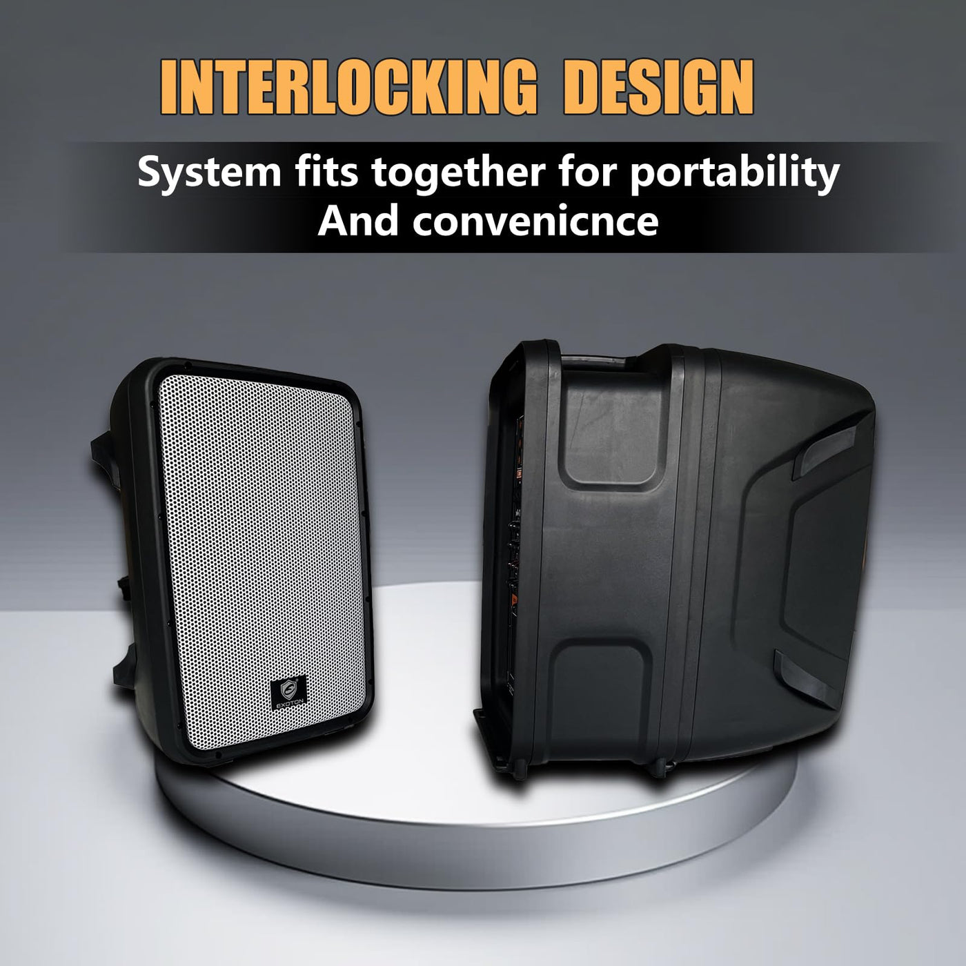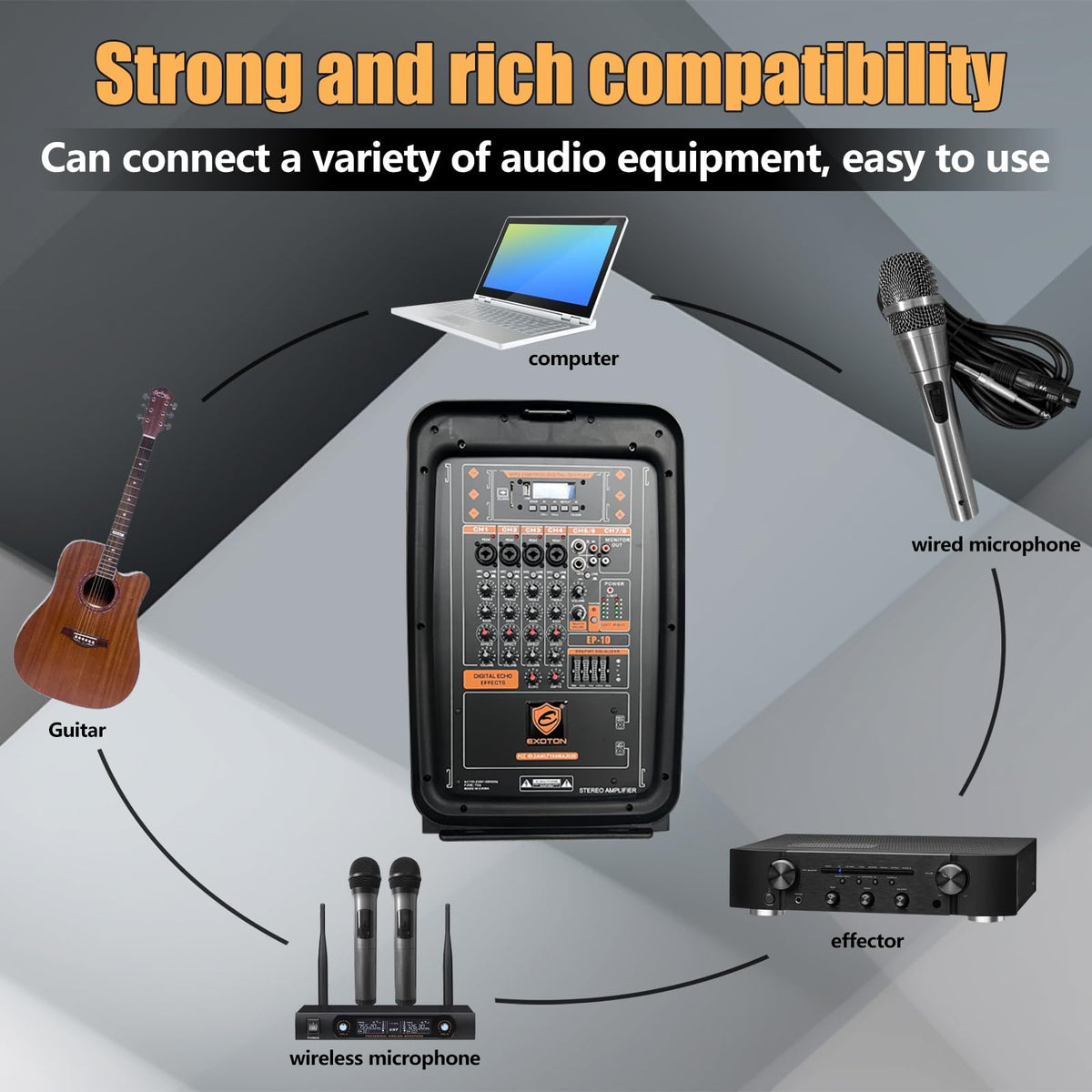 Exoton 10Inch Pa System With 8-Channel Mixer,Portable 600W Bluetooth Speakers,Usb/Sd/Fm/5-Band Eq, Includes 2 Speaker Stands/ Mic/48V Phantom Power ,For Indoor&Outdoor