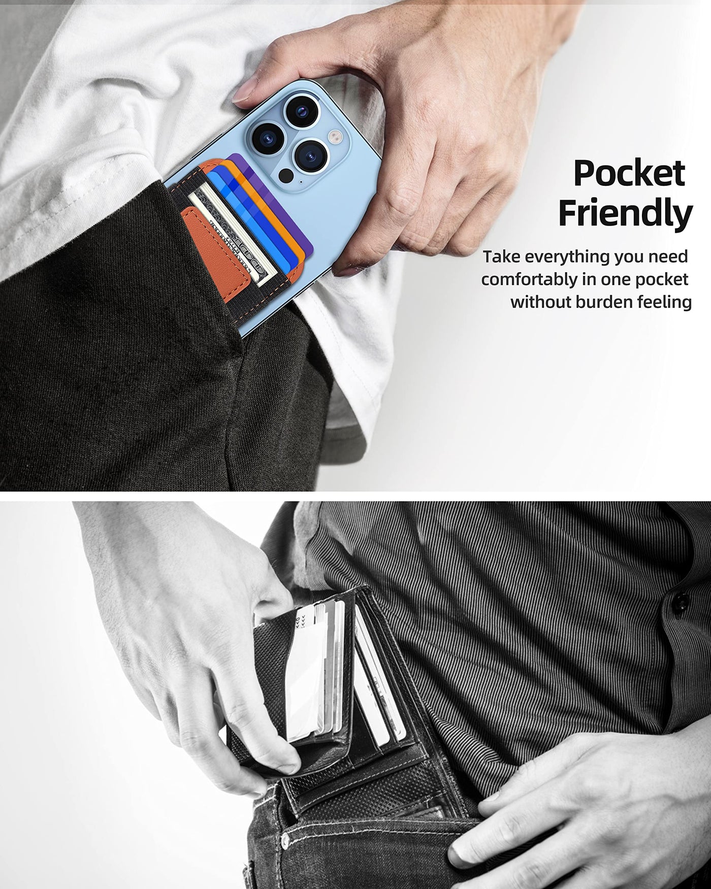 Q: How secure is the RFID blocking feature in the MagSafe Wallet?A: The wallet is equipped with advanced RFID blocking technology that protects against unauthorized scans of your RFID chips, ensuring your personal information remains safe while traveling or shopping.