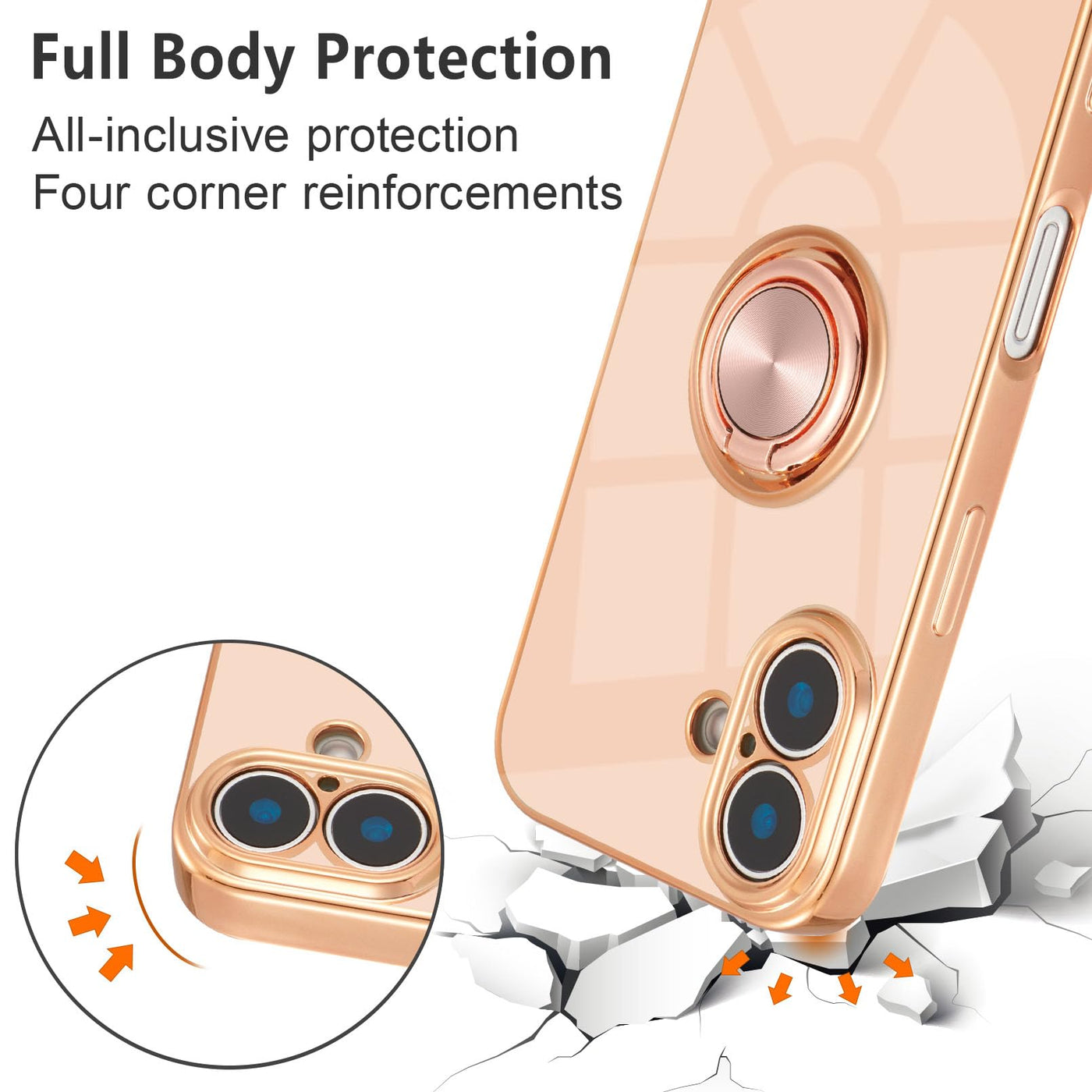 Eyzutak Case For Iphone 16, Phone Case With 360 Rotatable Finger Ring Holder Kickstand Magnetic Car Mount Supported Shiny Platin