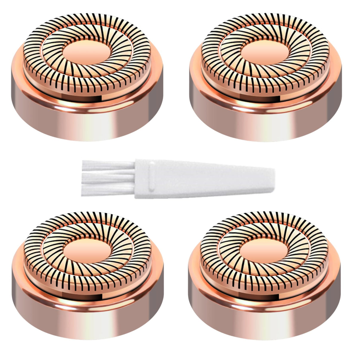 Q: What is included in the package when I purchase these replacement heads?A: The package includes four double ring hypoallergenic replacement heads and a cleaning brush, providing everything you need for maintaining your facial hair remover and ensuring optimal hygiene.