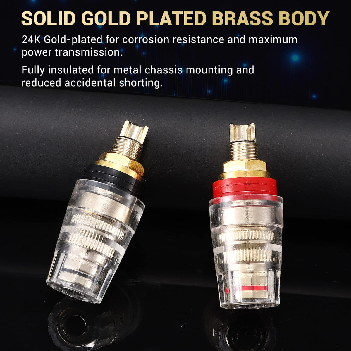 Facmogu 4Pcs Black & Red Heavy Duty 5 Way Binding Post Banana Jacks 4Mm, 24K Gold Plated Sold Brass Insulated Binding Post Banana Plugs, Speaker Amplifier Bindling Post Terminal Connectors Short