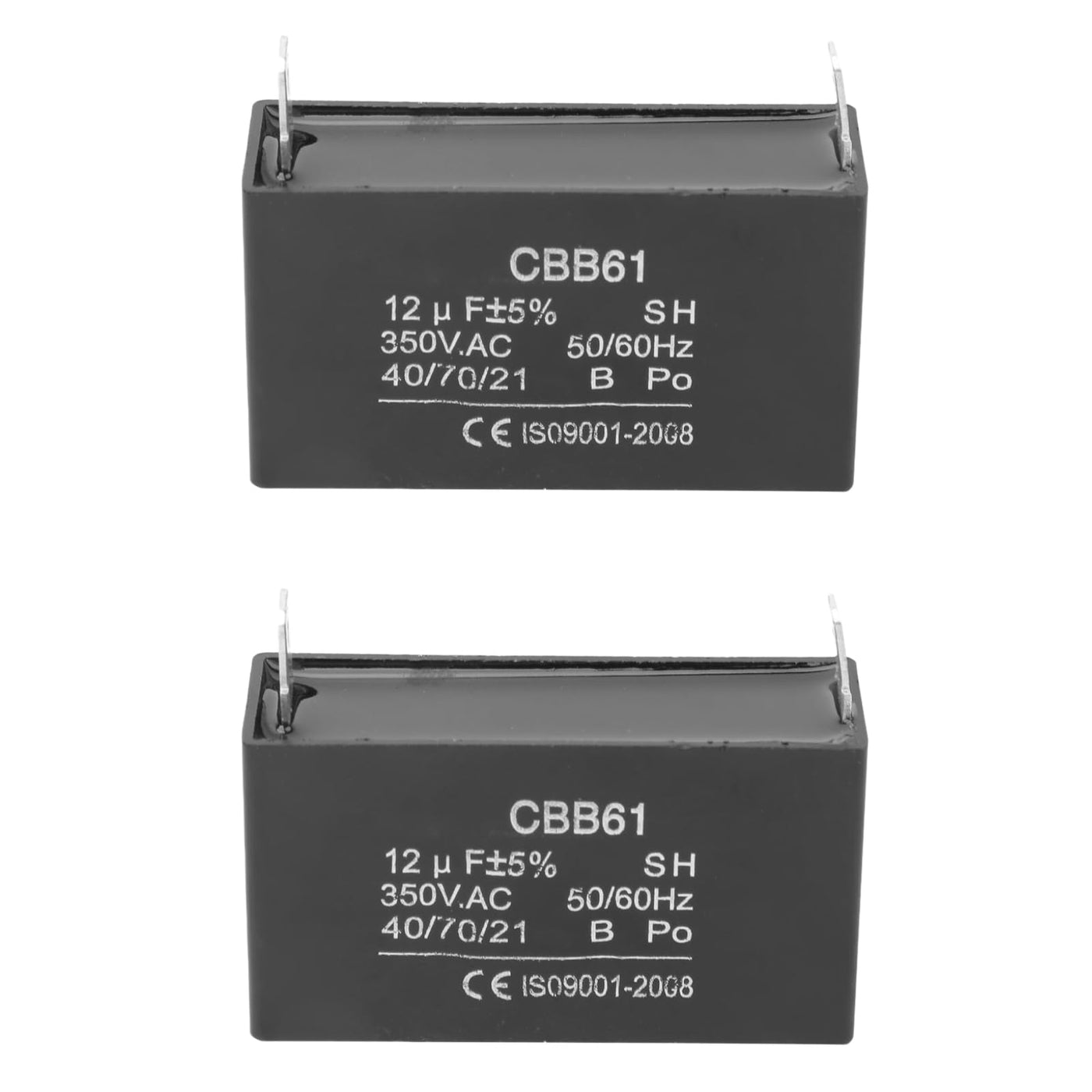 Fafeicy 2 Pcs Cbb61 Capacitor, Ac350V Plastic Capacitor, Gasoline Generator Starting Air Conditioning Motor Capacitor 350Vac 12U