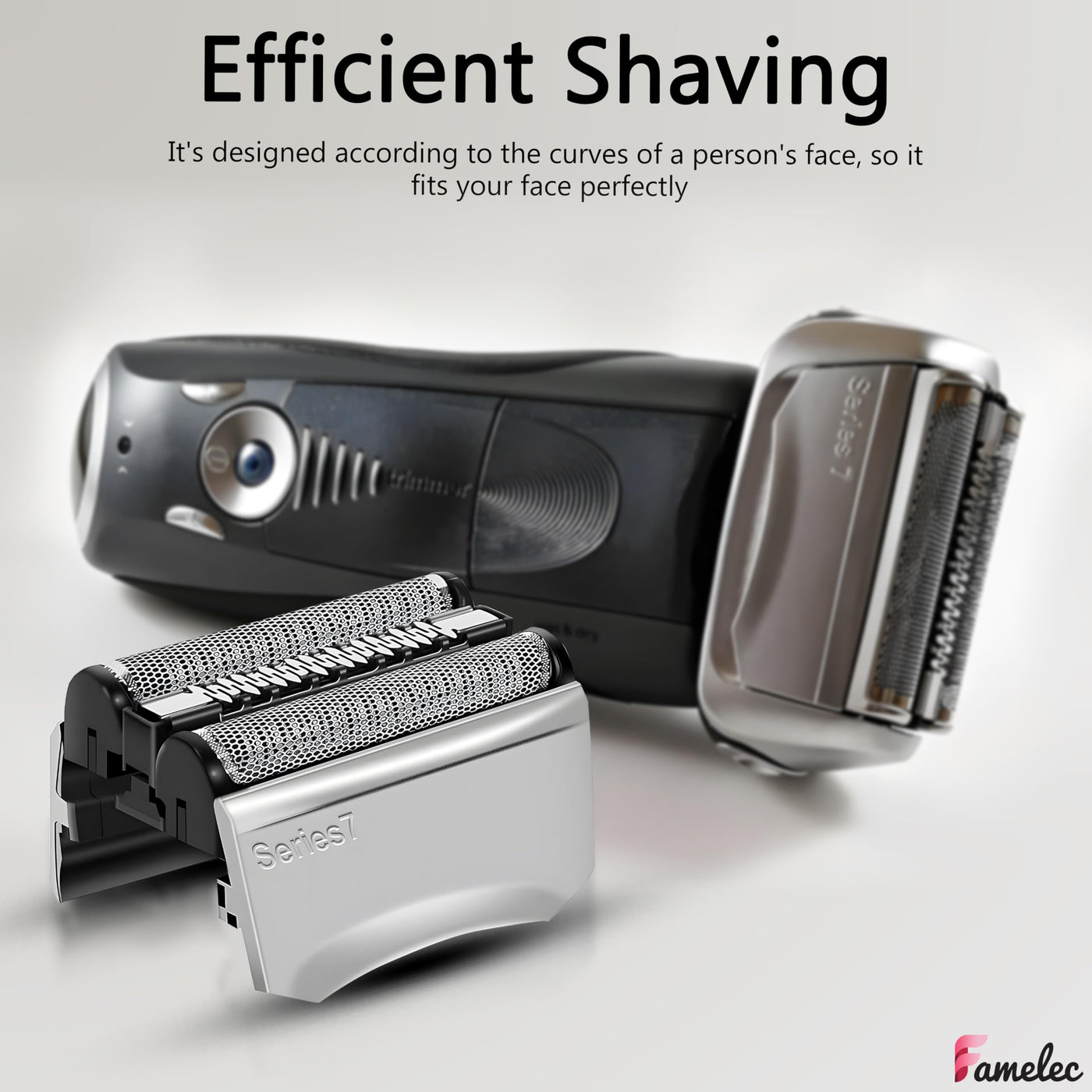 Q: What Braun shaver models are compatible with the FAMELEC Upgrade 70S Series 7 replacement head?A: The FAMELEC Upgrade 70S Series 7 replacement head is compatible with Braun Series 7 models including 720cc, 730cc, 735s, 750cc, 760cc, 790cc, and 795cc. This ensures a perfect fit and optimal performance for these specific models.