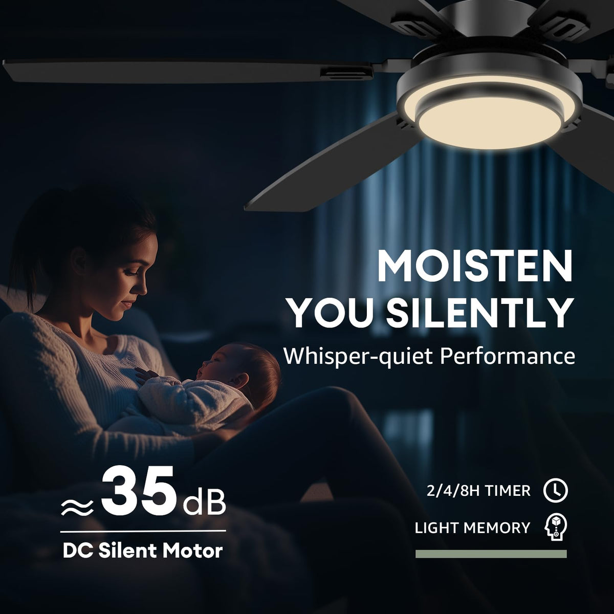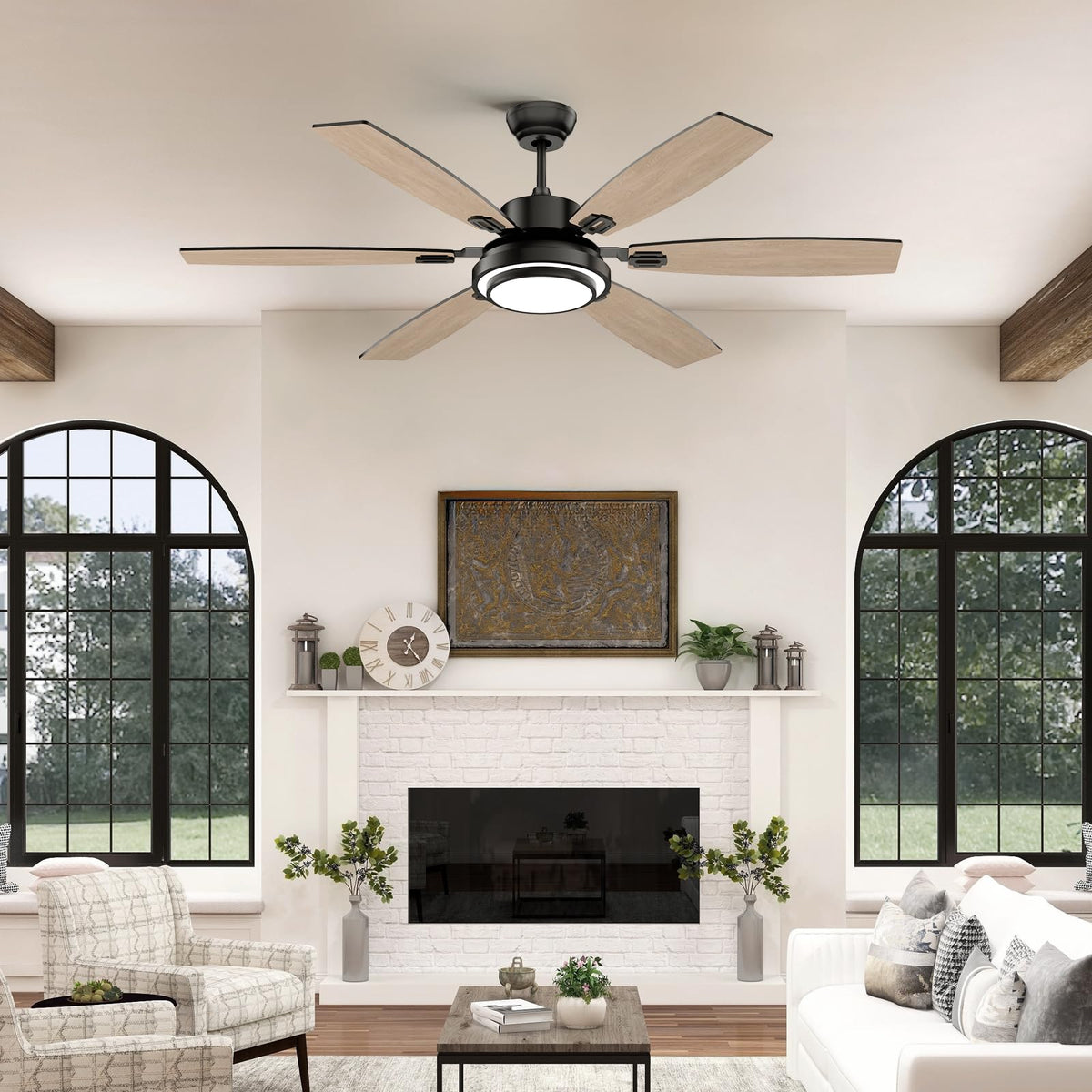 Fanbliss 60 Inch Black Large Ceiling Fans With Lights And Remote Control For Living Room, Modern Ceiling Fan With Quiet Reversib