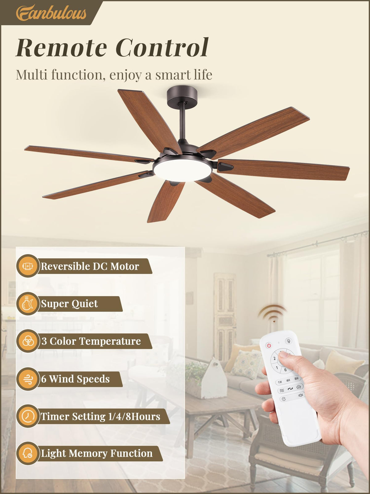 Fanbulous 62 Inch Large Ceiling Fans With Lights And Remote, Oil Bronze Modern Ceiling Fan With 3Cct Led Light, Quiet Dc Motor,I