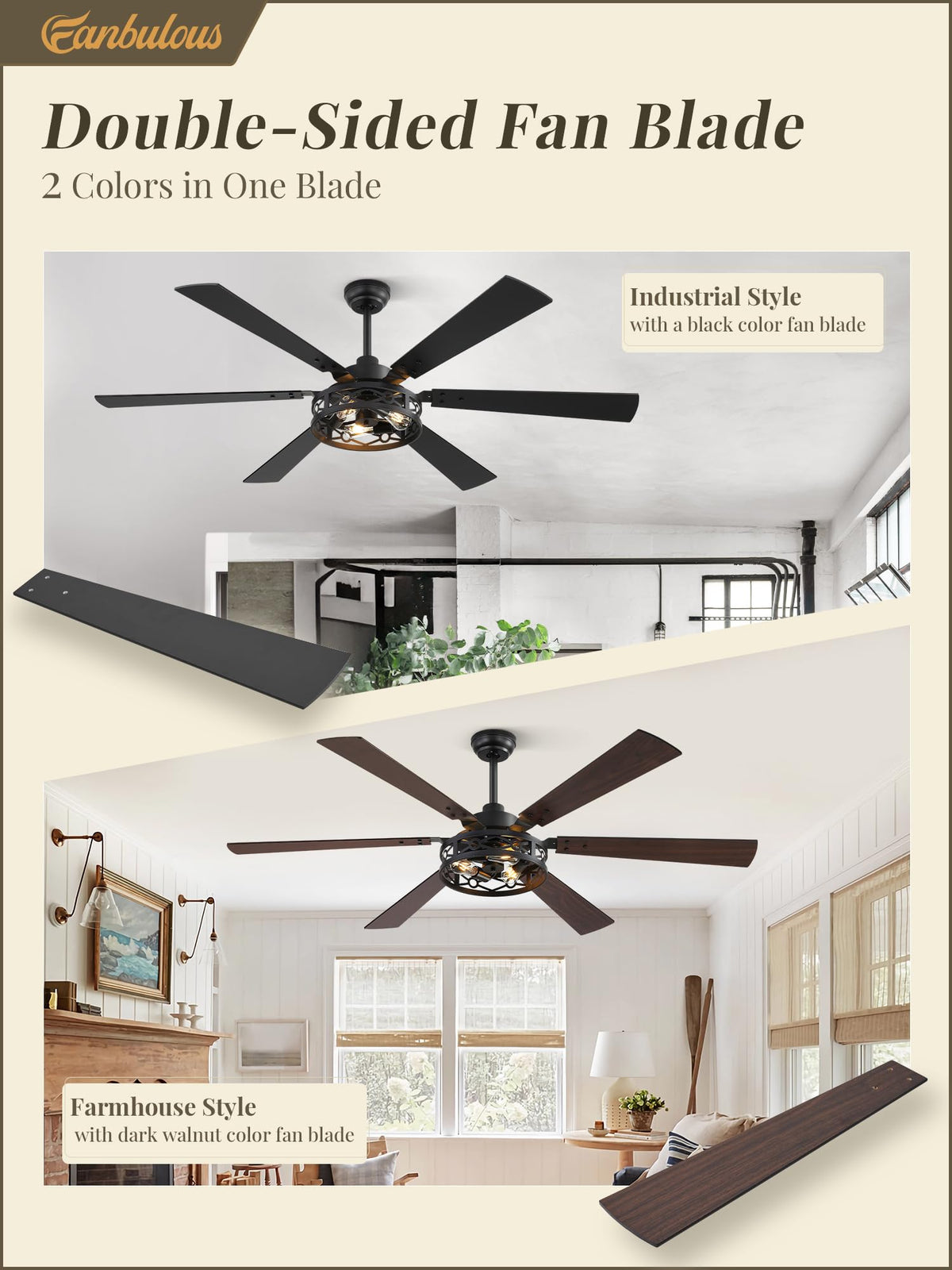 Fanbulous 65 Inch Ceiling Fan With Lights, Farmhouse Caged Ceiling Fans With Remote, Black Industrial Ceiling Fans With Quiet Re
